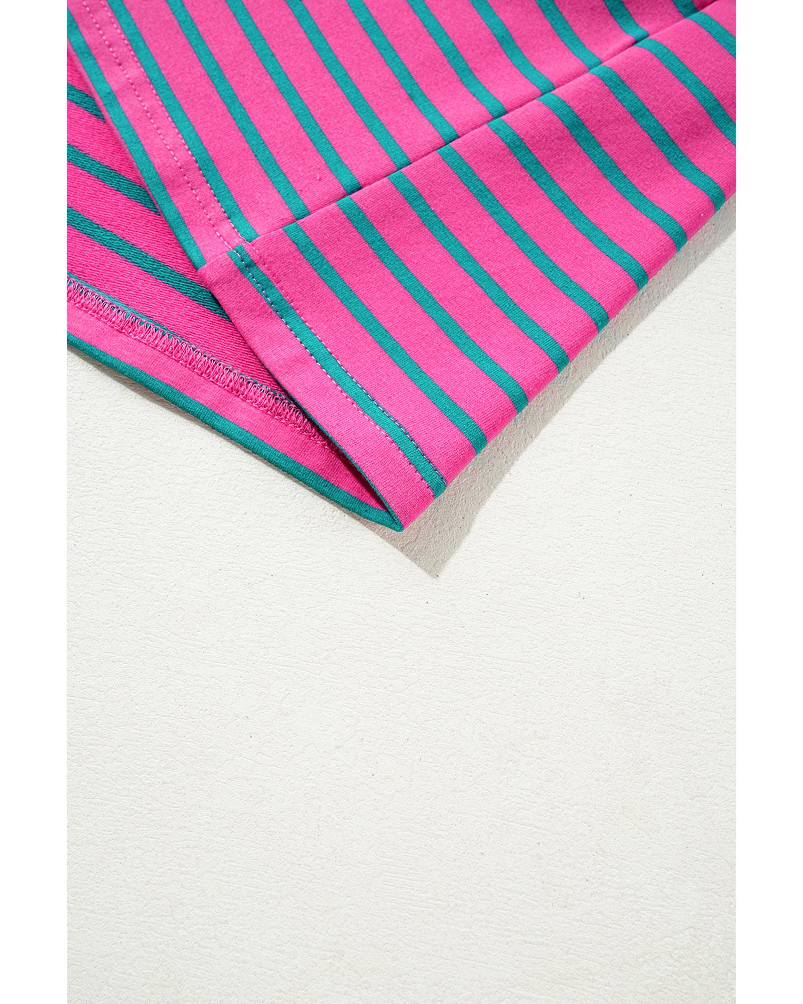 Azura Exchange Pink Stripe Collared V Neck Puff Sleeve T Shirt Dress - S
