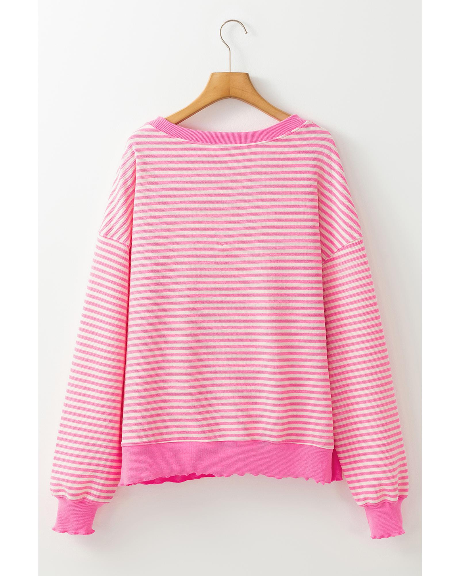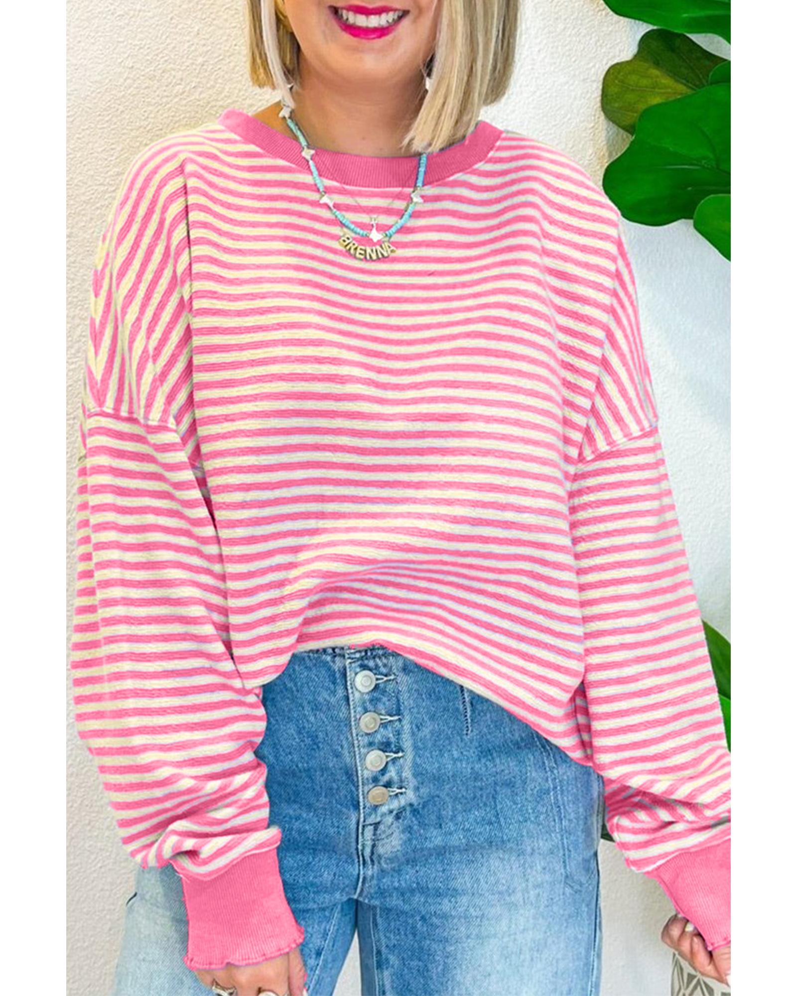 Azura Exchange Pink Stripe Loose Drop Shoulder Long Sleeve Top – XL
