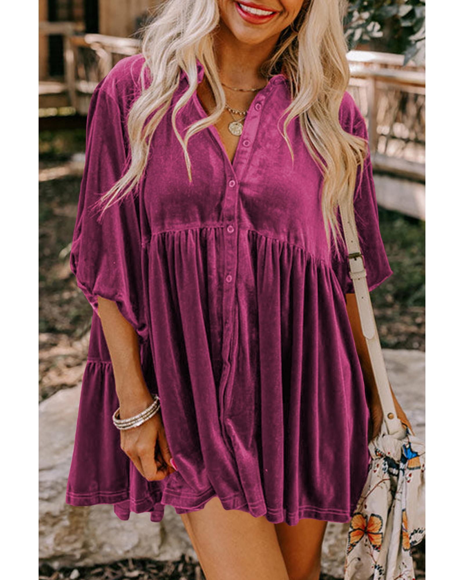 - Unisex Pitaya Pink 3/4 Sleeve Tunic Babydoll Velvet Shirt