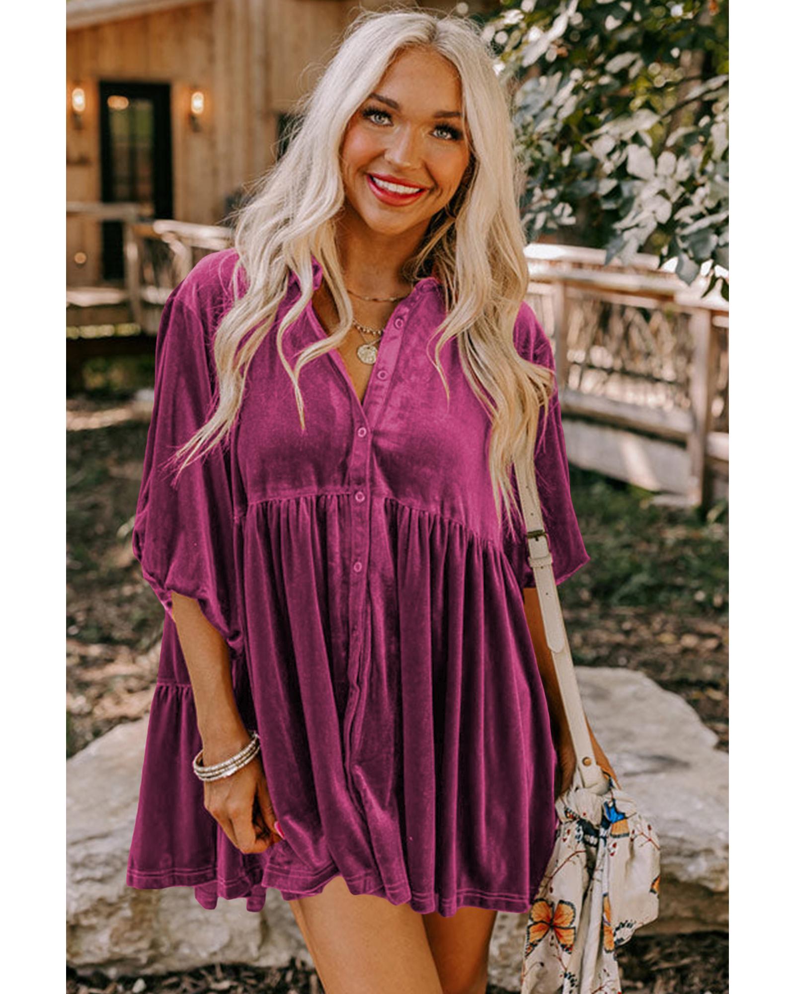 Azura Exchange Pitaya Pink 3/4 Sleeve Tunic Babydoll Velvet Shirt – S
