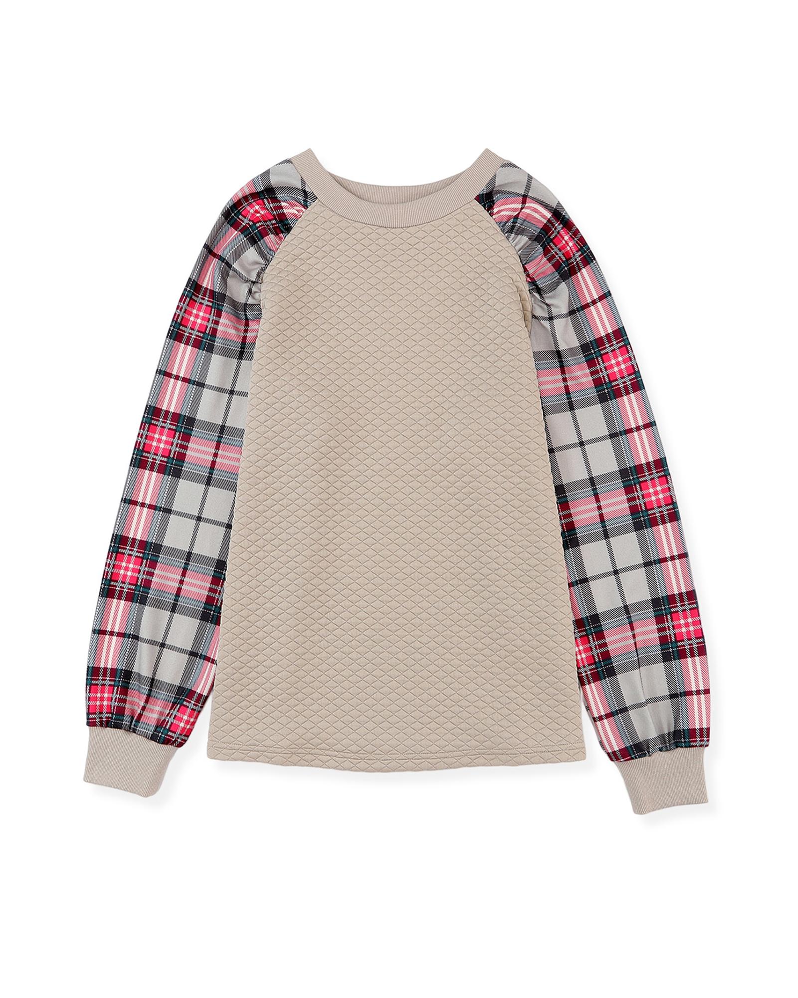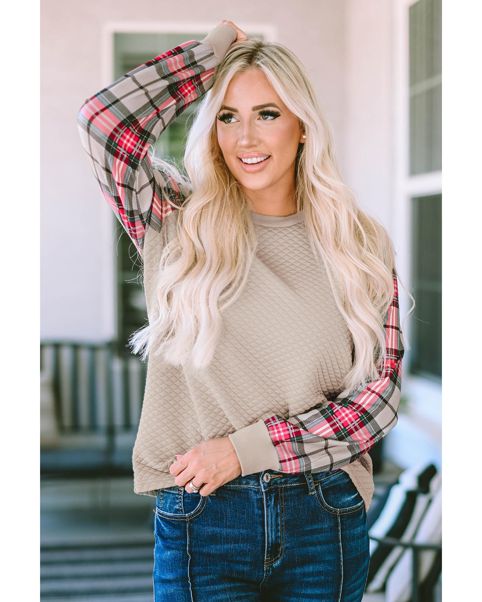 - Stylish plaid raglan sleeve sweatshirt for women