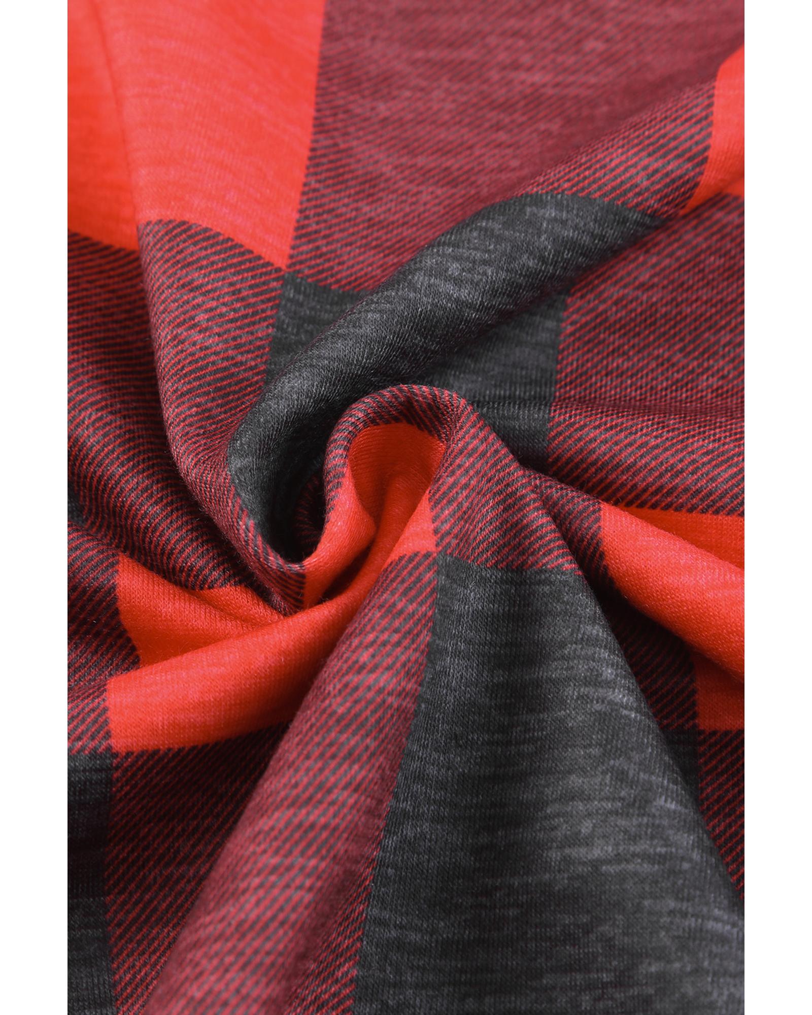 - Christmas Plaid Striped Patchwork Drawstring Hoodie