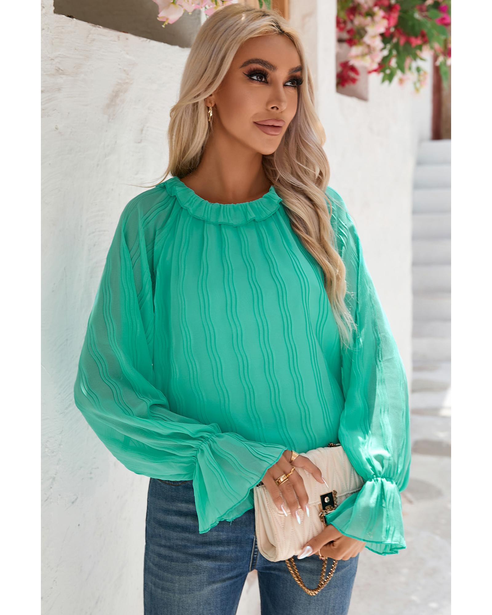 - Luxurious Striking Pleated Flared Cuff Long Sleeve Blouse