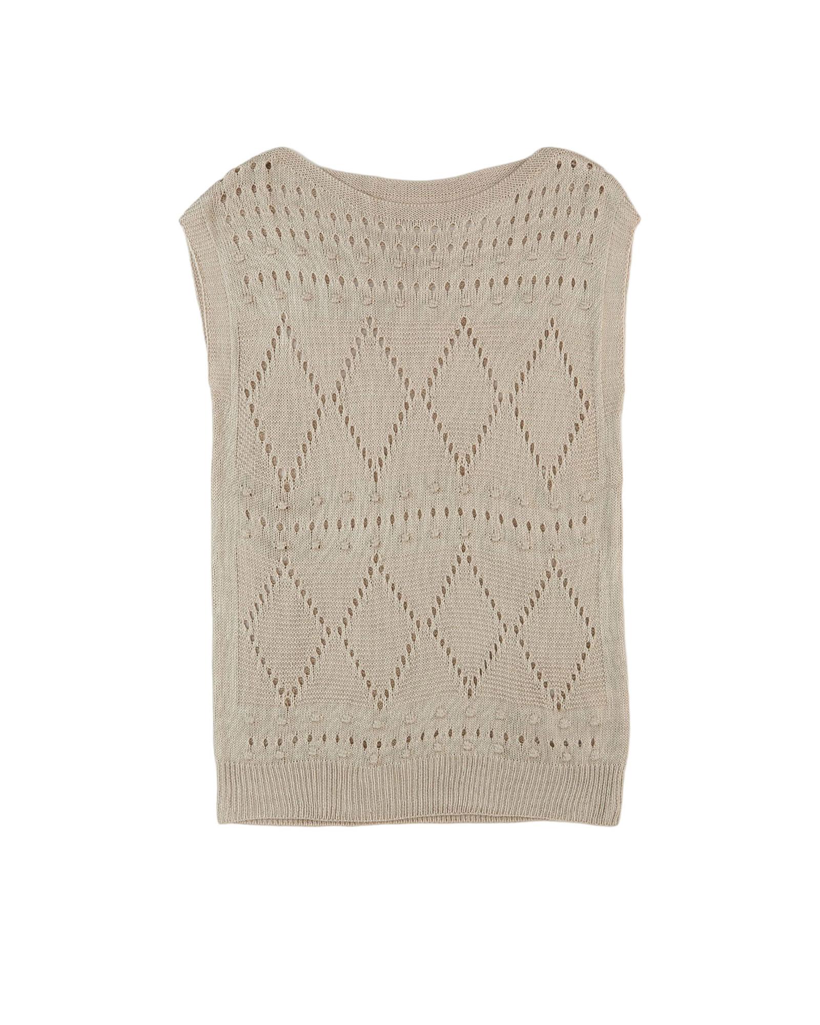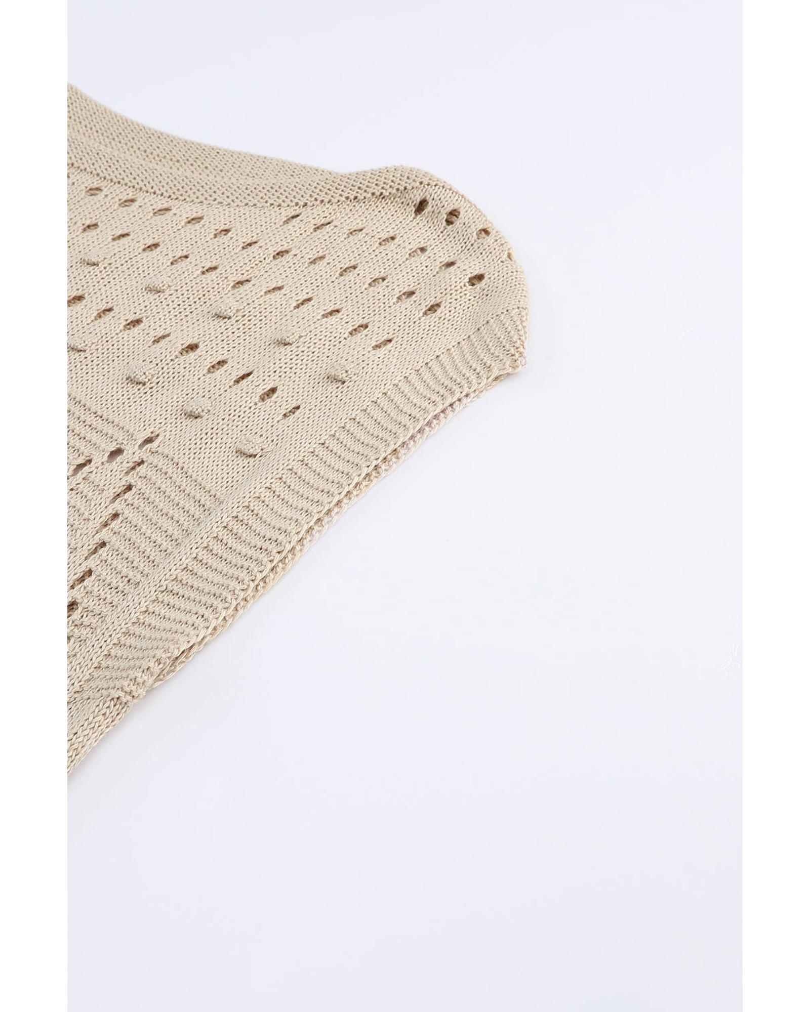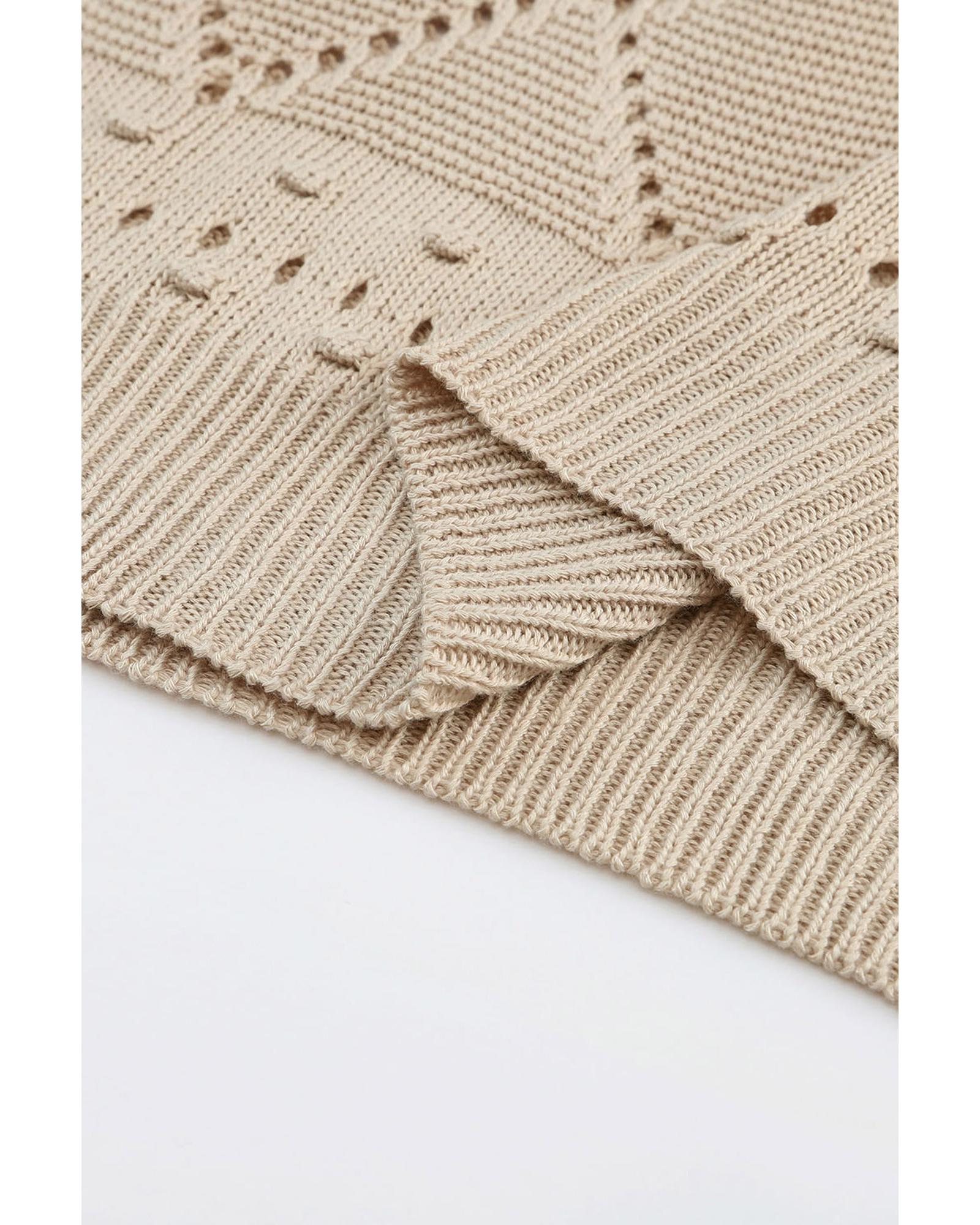 - Khaki Pointelle Knit Short Dolman Sleeve Sweater Top