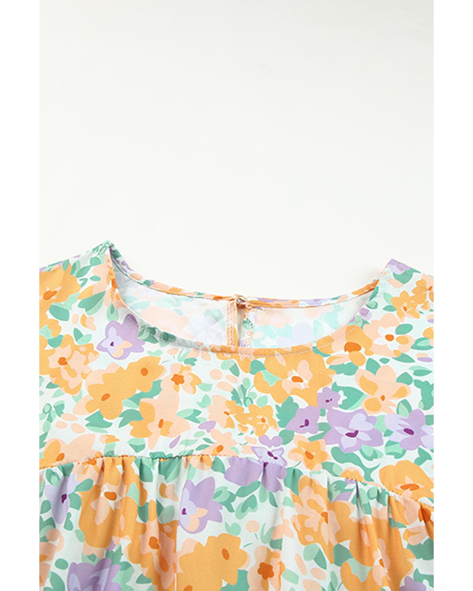 - Floral Print Keyhole Back Short Sleeve Babydoll Blouse