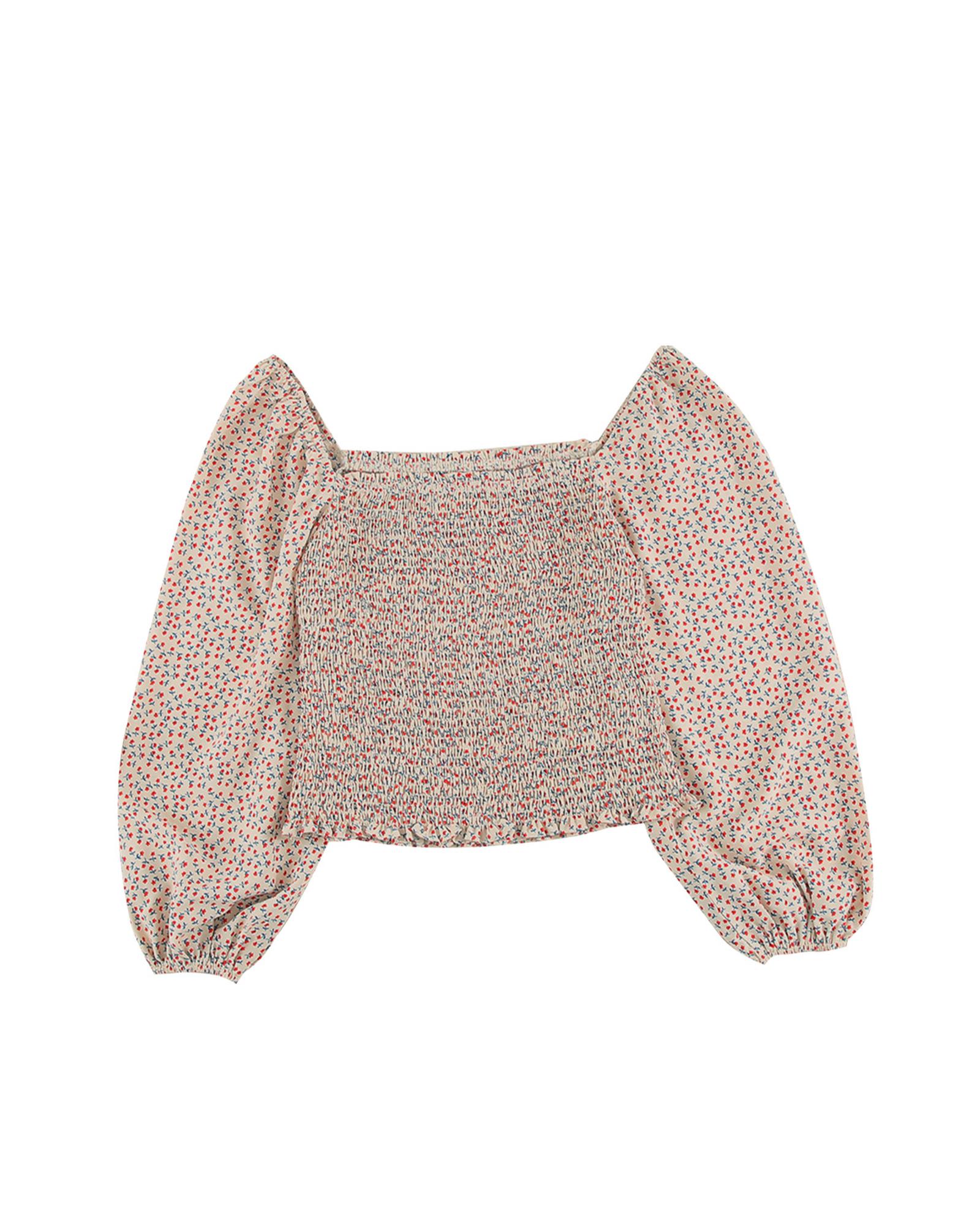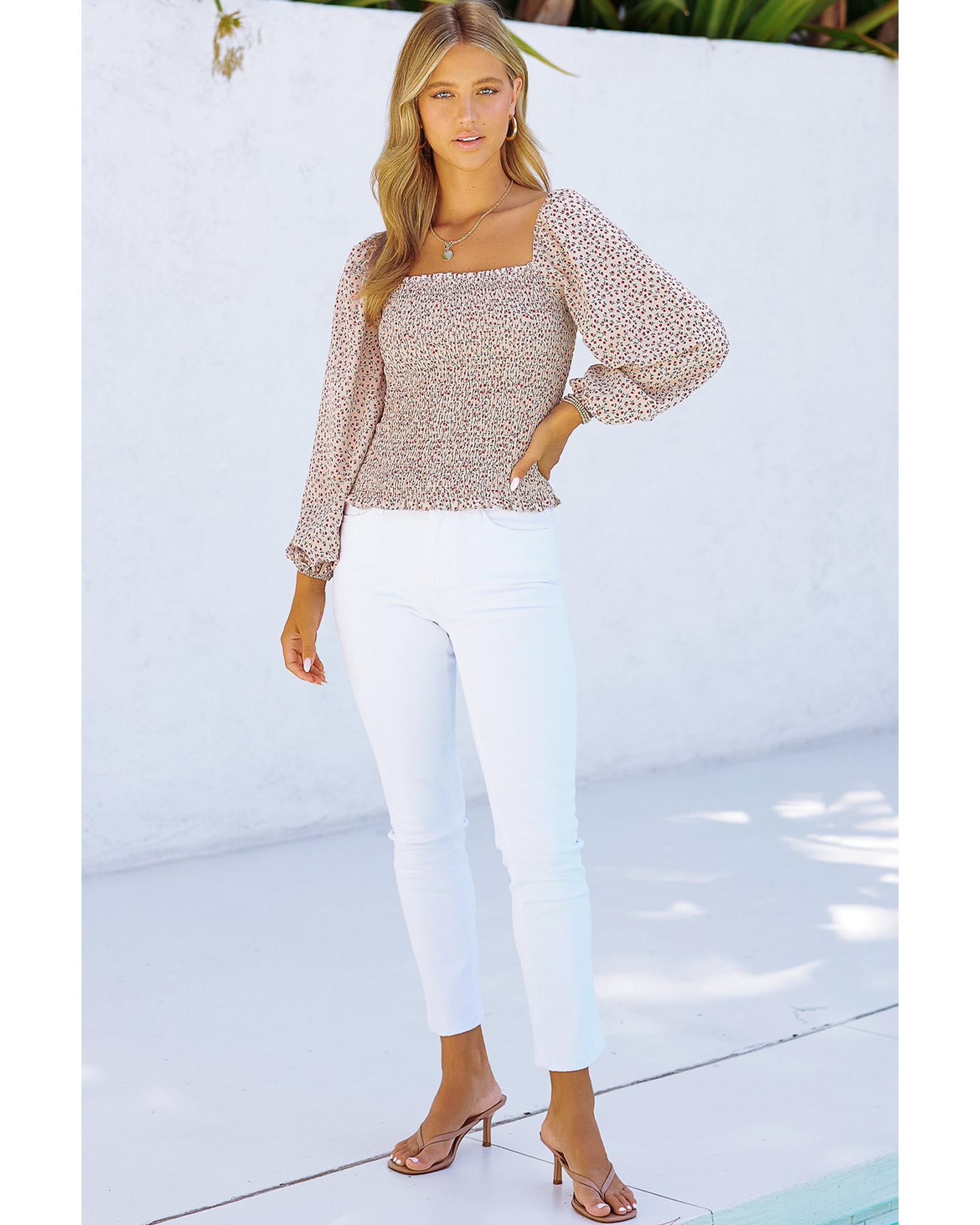 Azura Exchange Puff Sleeve Floral Smocked Top - L