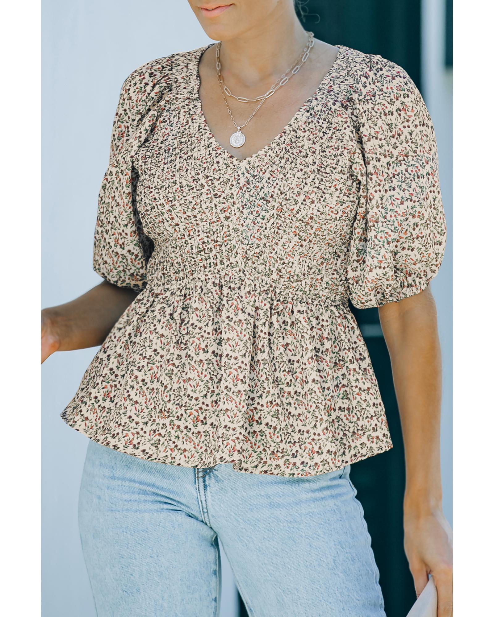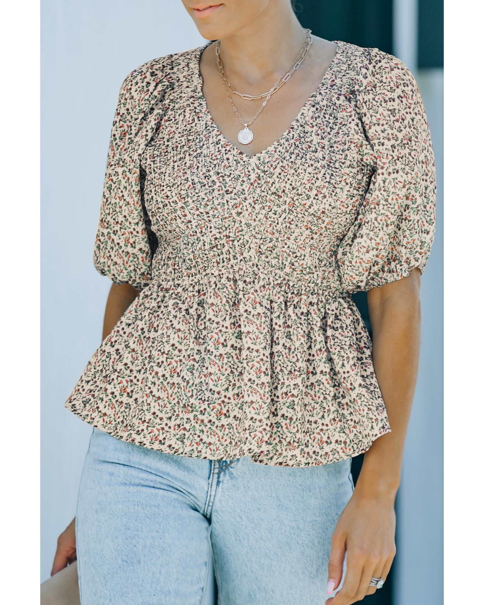 Azura Exchange Puff Sleeve Smocked Top with Floral Print - S Original price was: $66.99.Current price is: $35.99.
