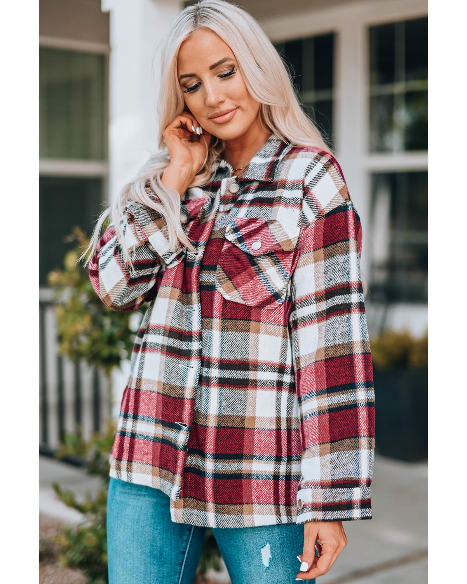 Azura Exchange Red Geometric Plaid Print Pocketed Shacket – XL