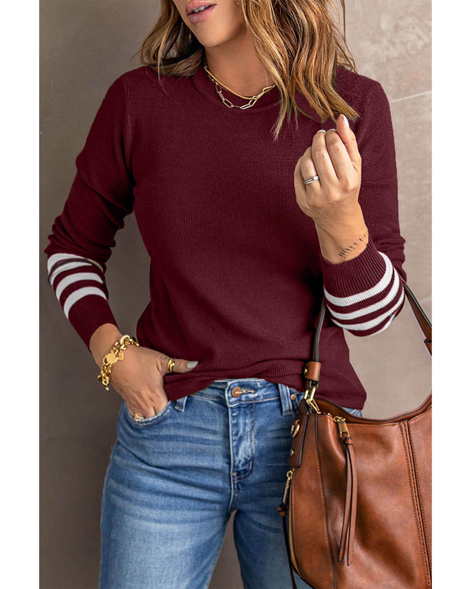 Azura Exchange Red Striped Sleeve Plain Knit Sweater – L
