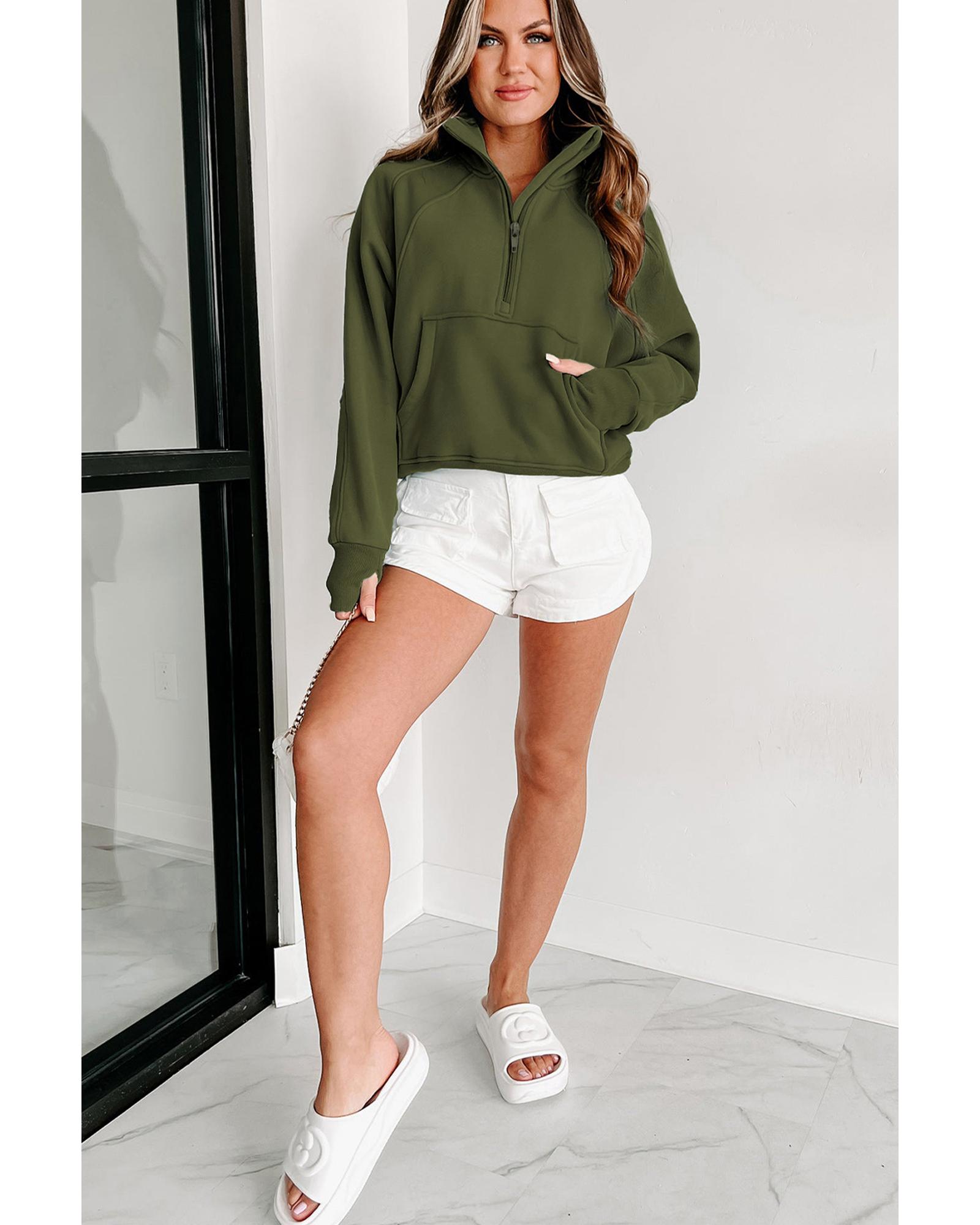 Azura Exchange Ribbed Thumbhole Sleeve Sweatshirt with Stand Collar and Zip Closure – XL