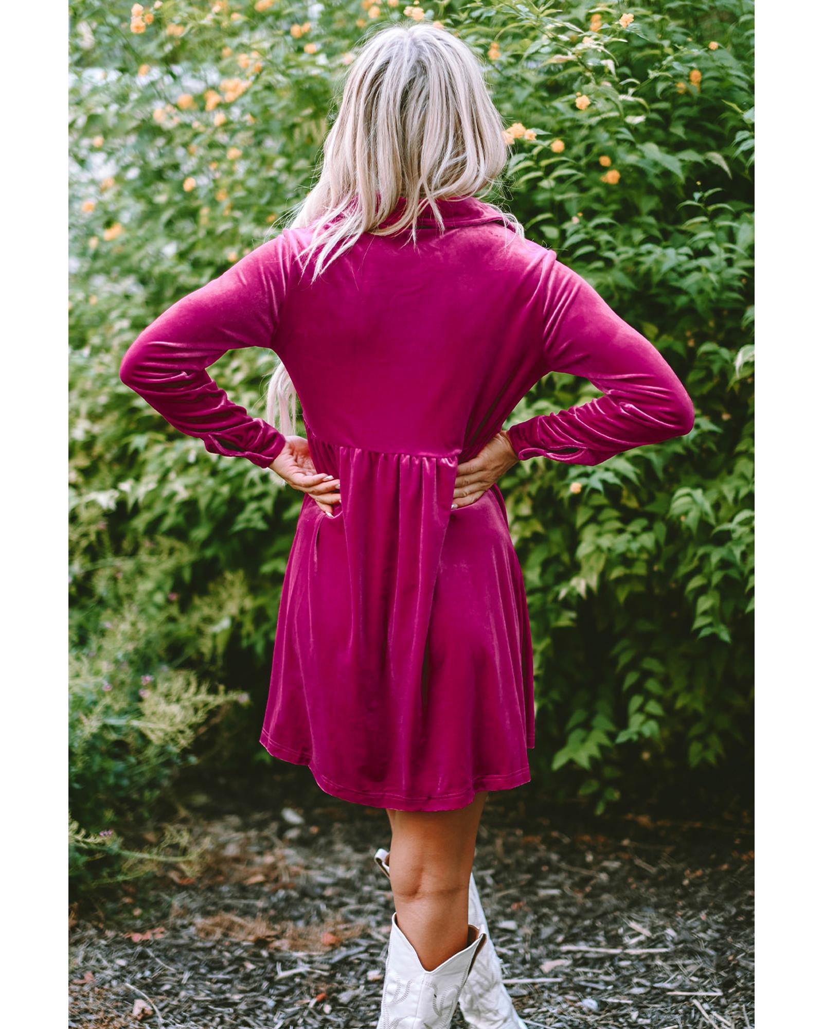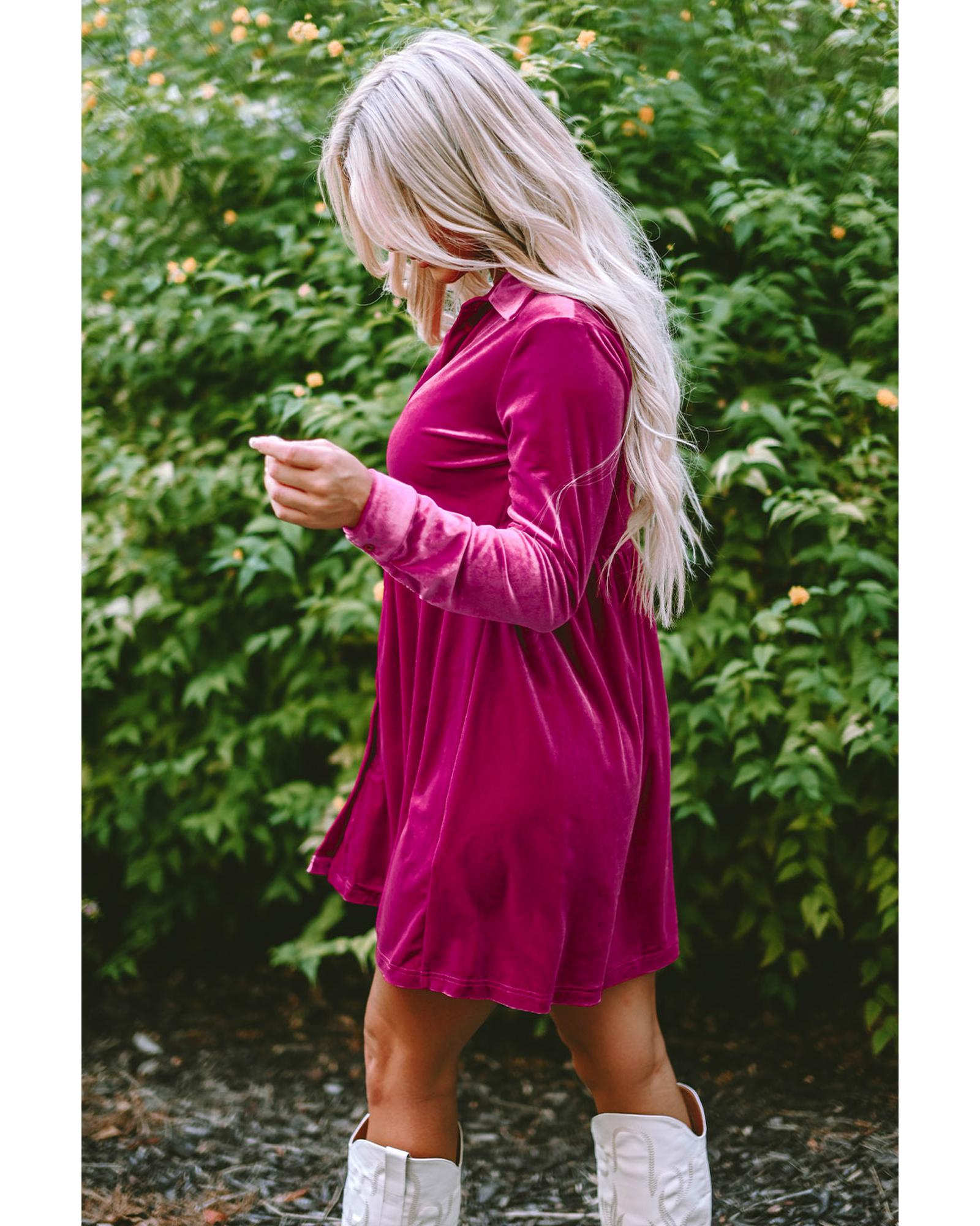 Azura Exchange Rose Long Sleeve Ruffle Velvet Button Up Dress – M