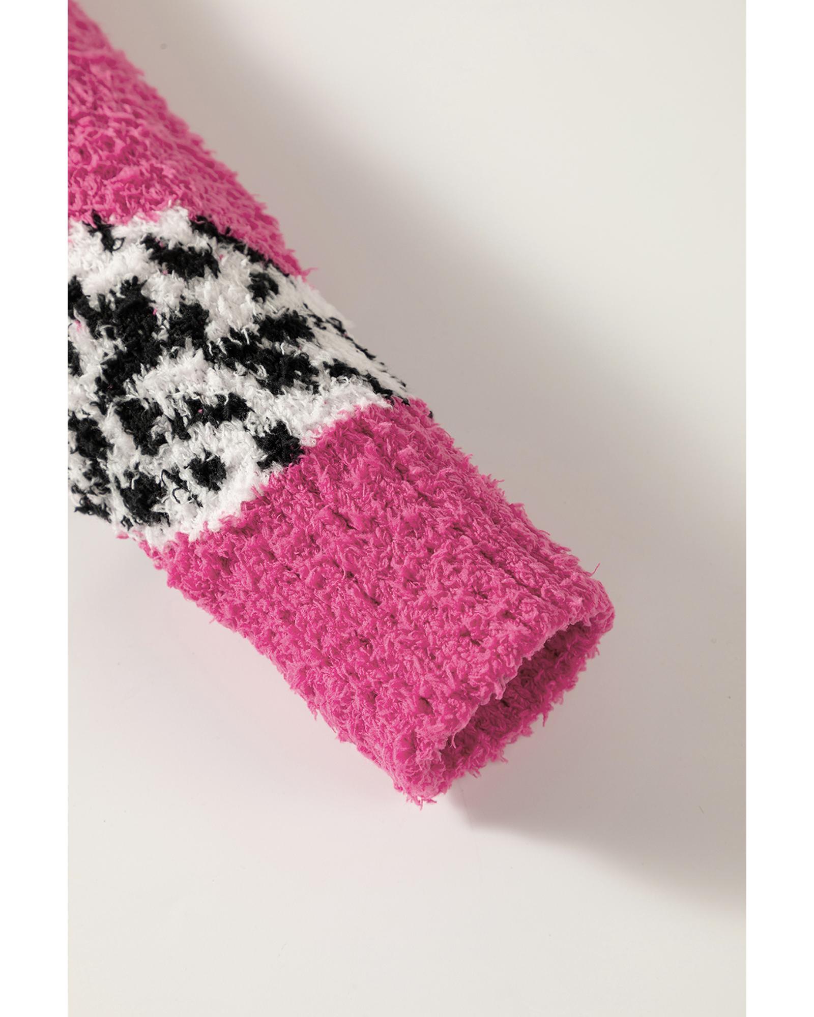 Azura Exchange Rose Red Cheetah Pattern Open Front Knitted Cardigan – M