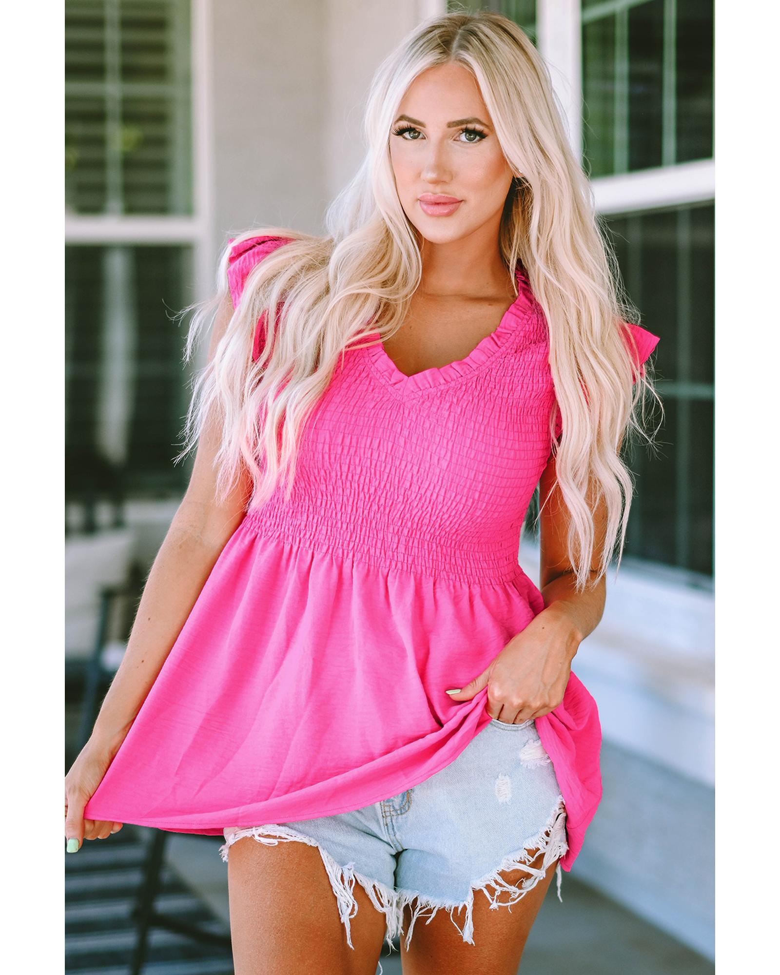 - Stylish Smocked Ruffle Flutter Sleeve Peplum Blouse