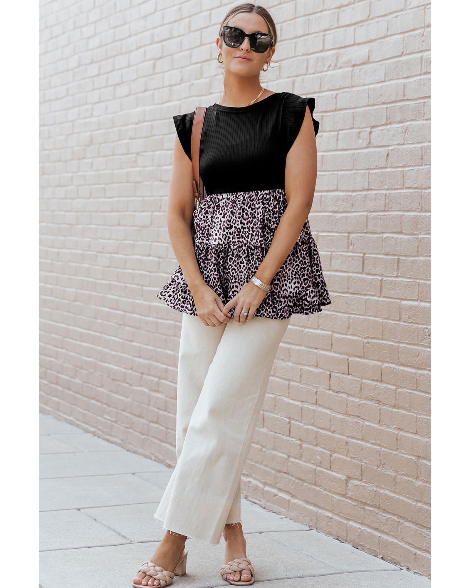• Stylish and trendy Ruffle Sleeve Bodice Leopard Splice Blouse