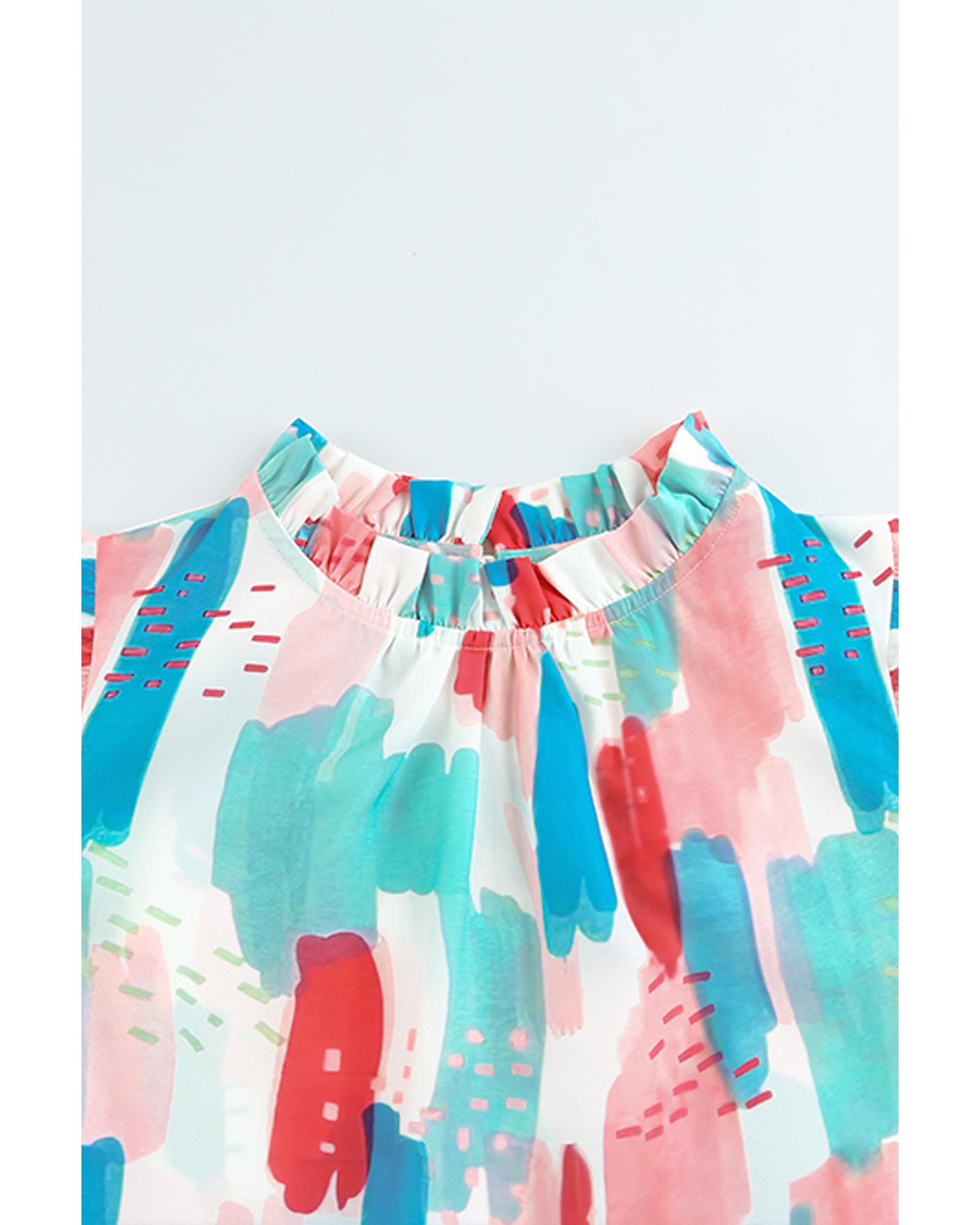 • Stylish and trendy Color Block Ruffled Mock Neck Ruffled Top