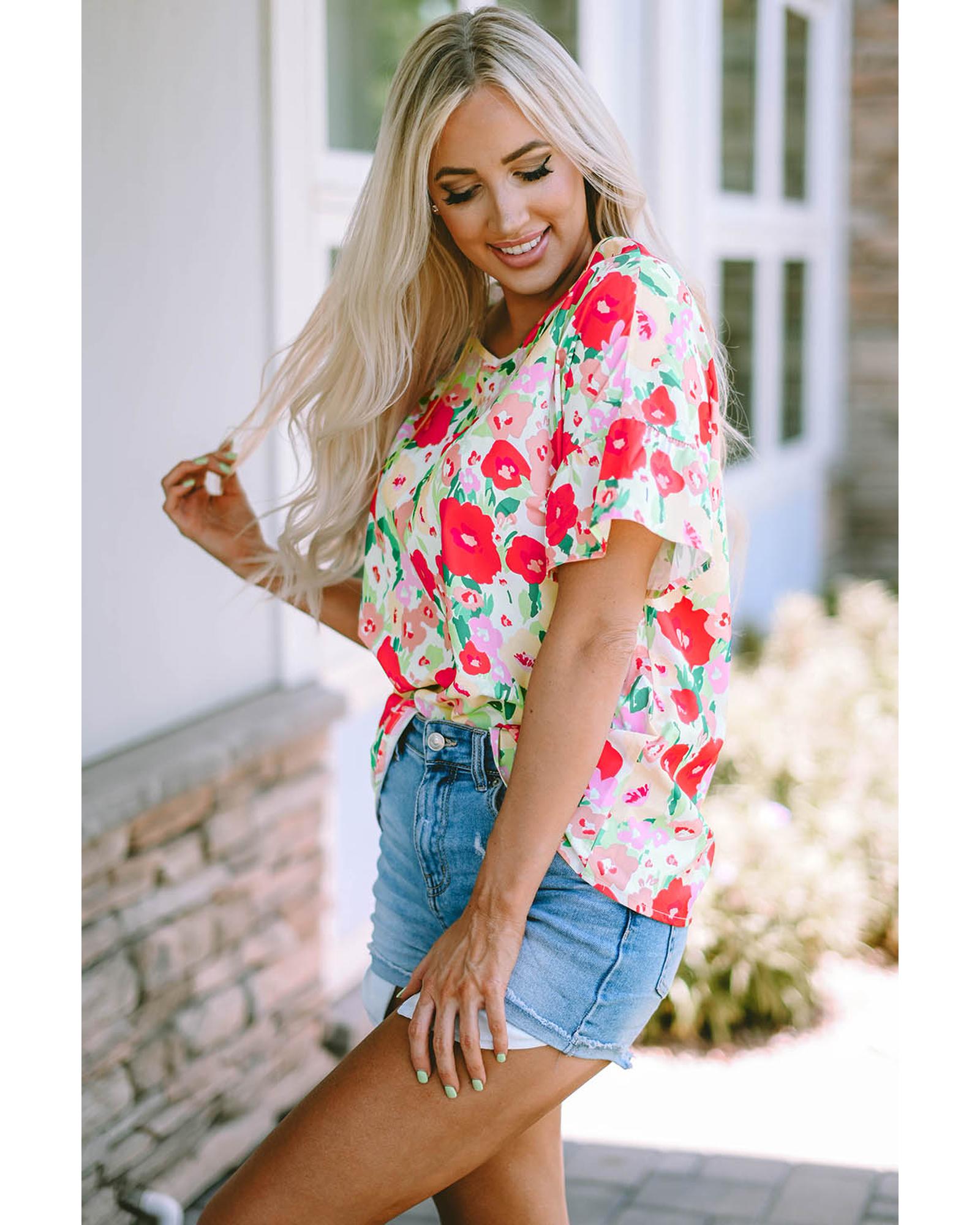 Azura Exchange Ruffled V Neck Floral Print Blouse – L
