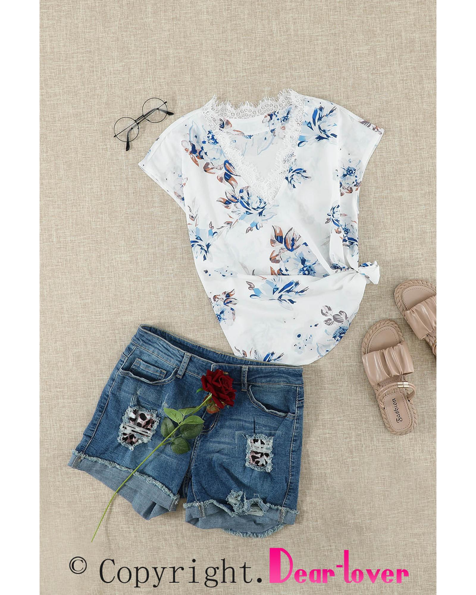 Azura Exchange Scalloped V Neck Short Sleeves Top – XL