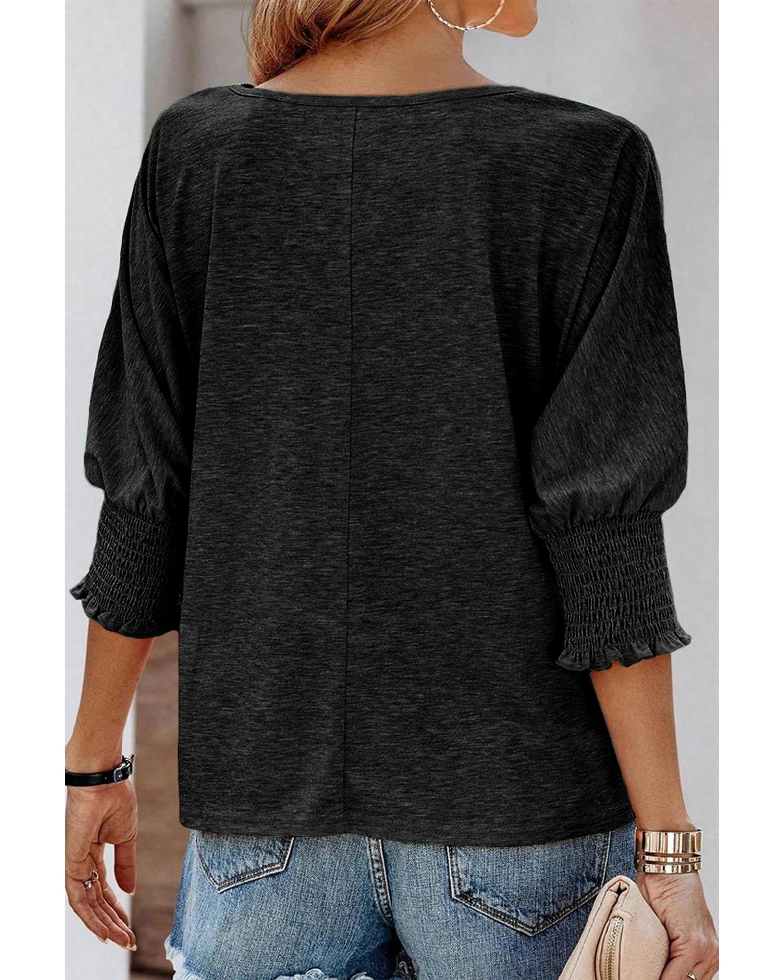 Azura Exchange Smocked 3/4 Sleeve Casual Loose Top – S