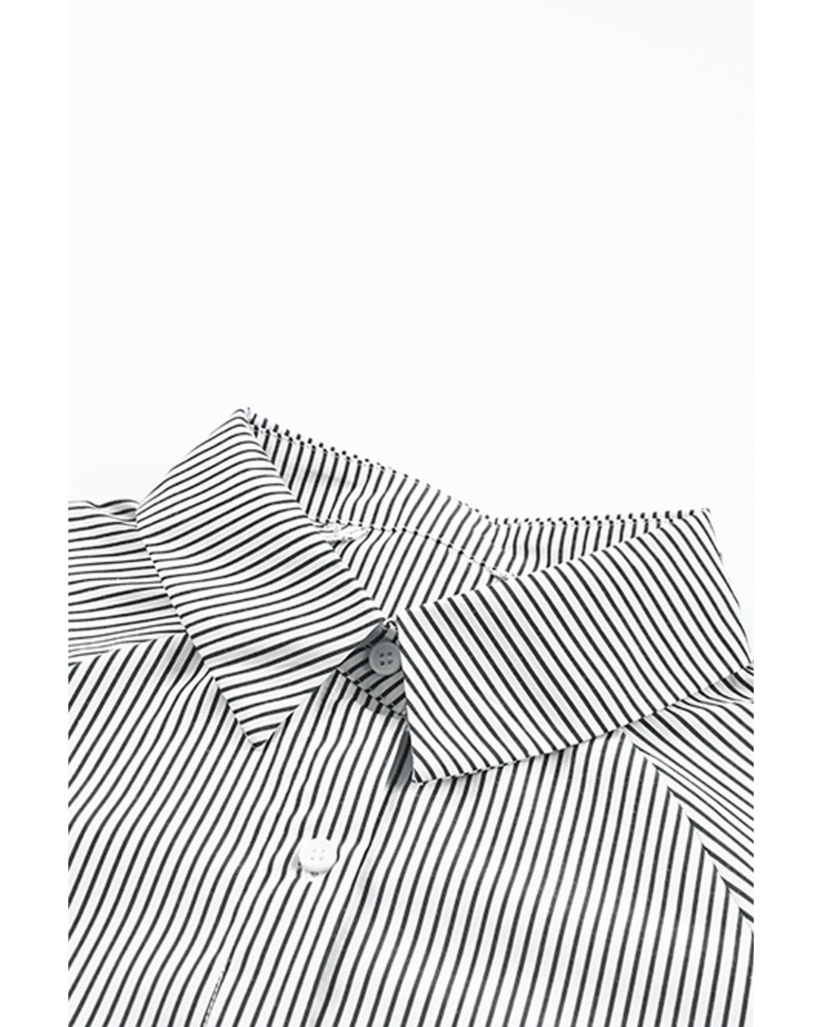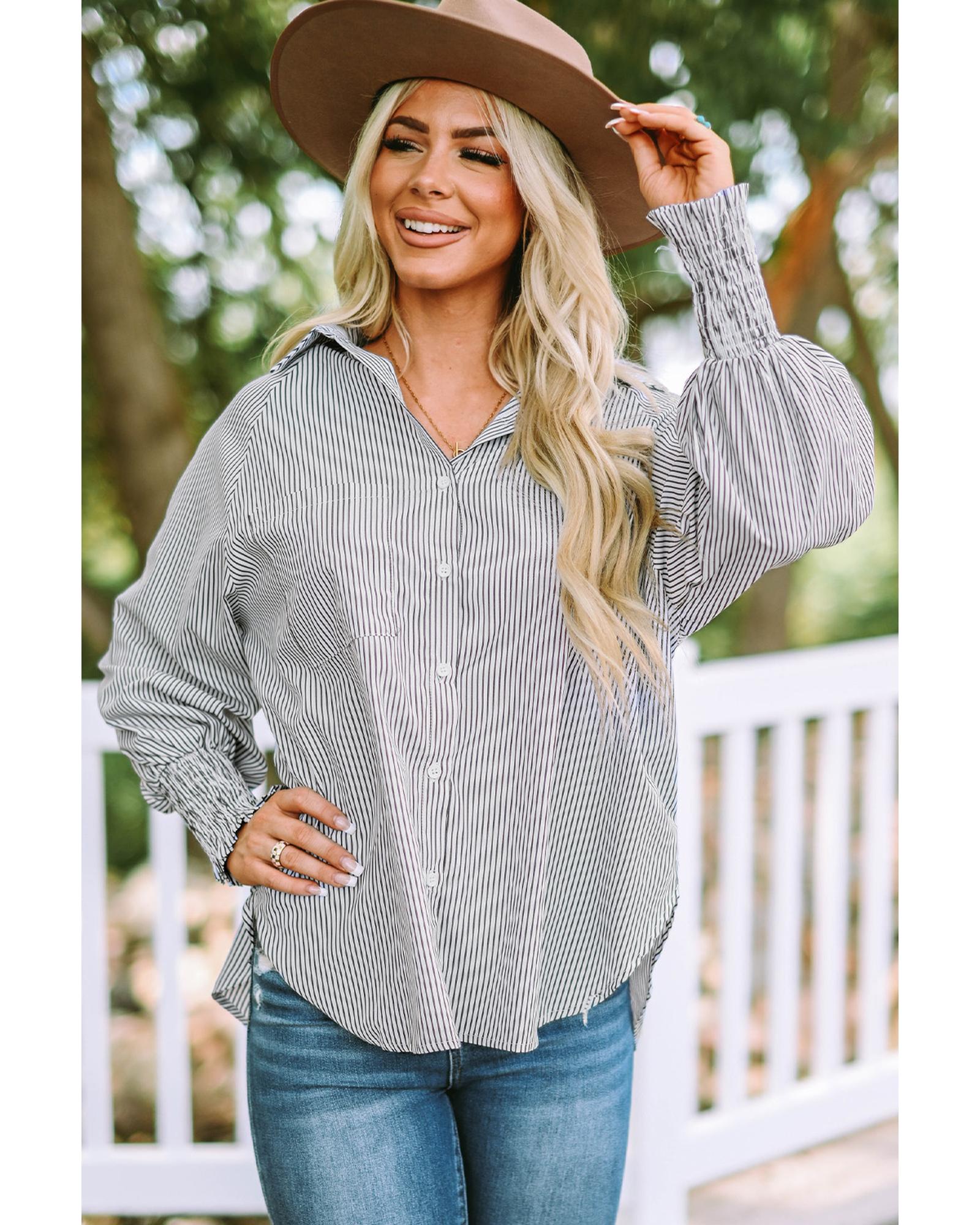 Azura Exchange Striped Boyfriend Shirt with Smocked Cuffs and Pocket - M Original price was: $60.99.Current price is: $32.99.
