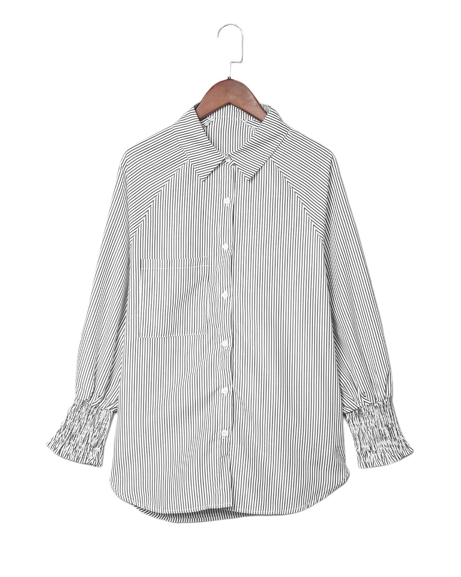 Azura Exchange Striped Boyfriend Shirt with Smocked Cuffs and Pocket – S