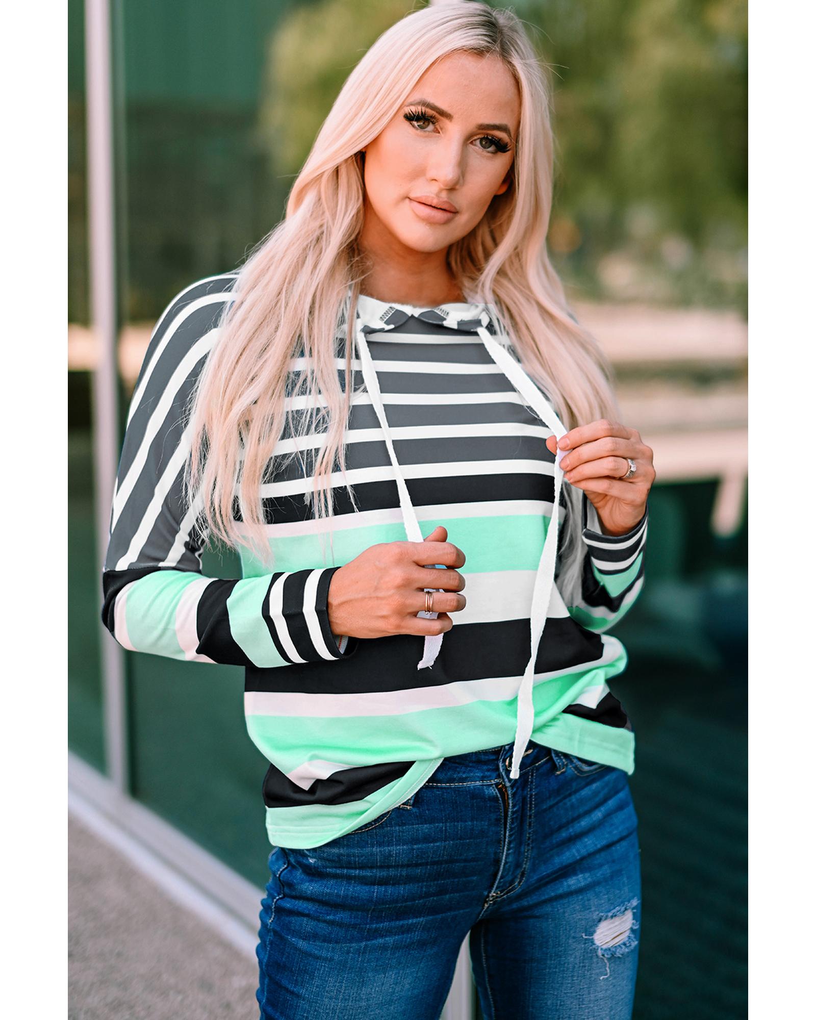 - Style: Striped Drawstring Long Sleeve Hoodie