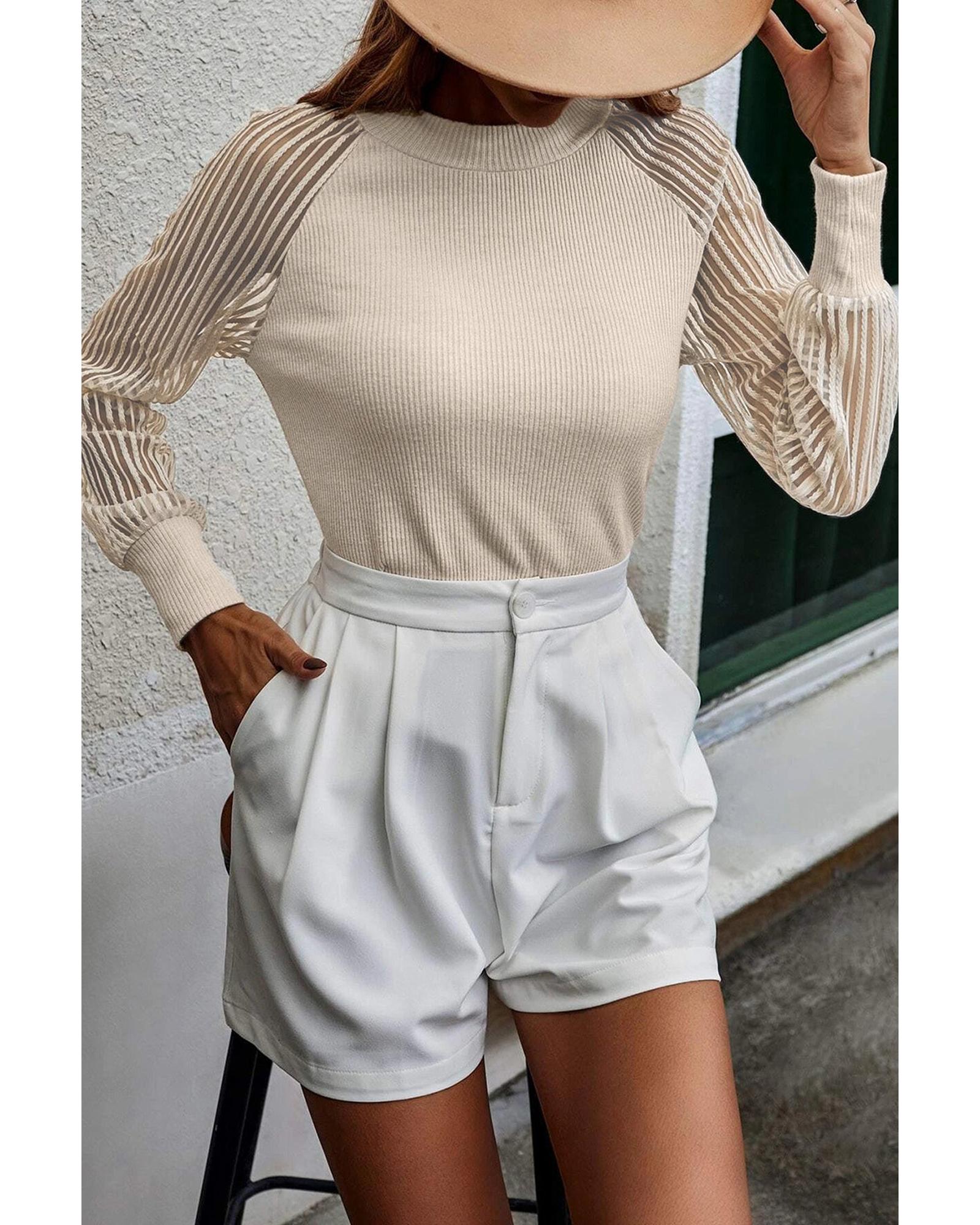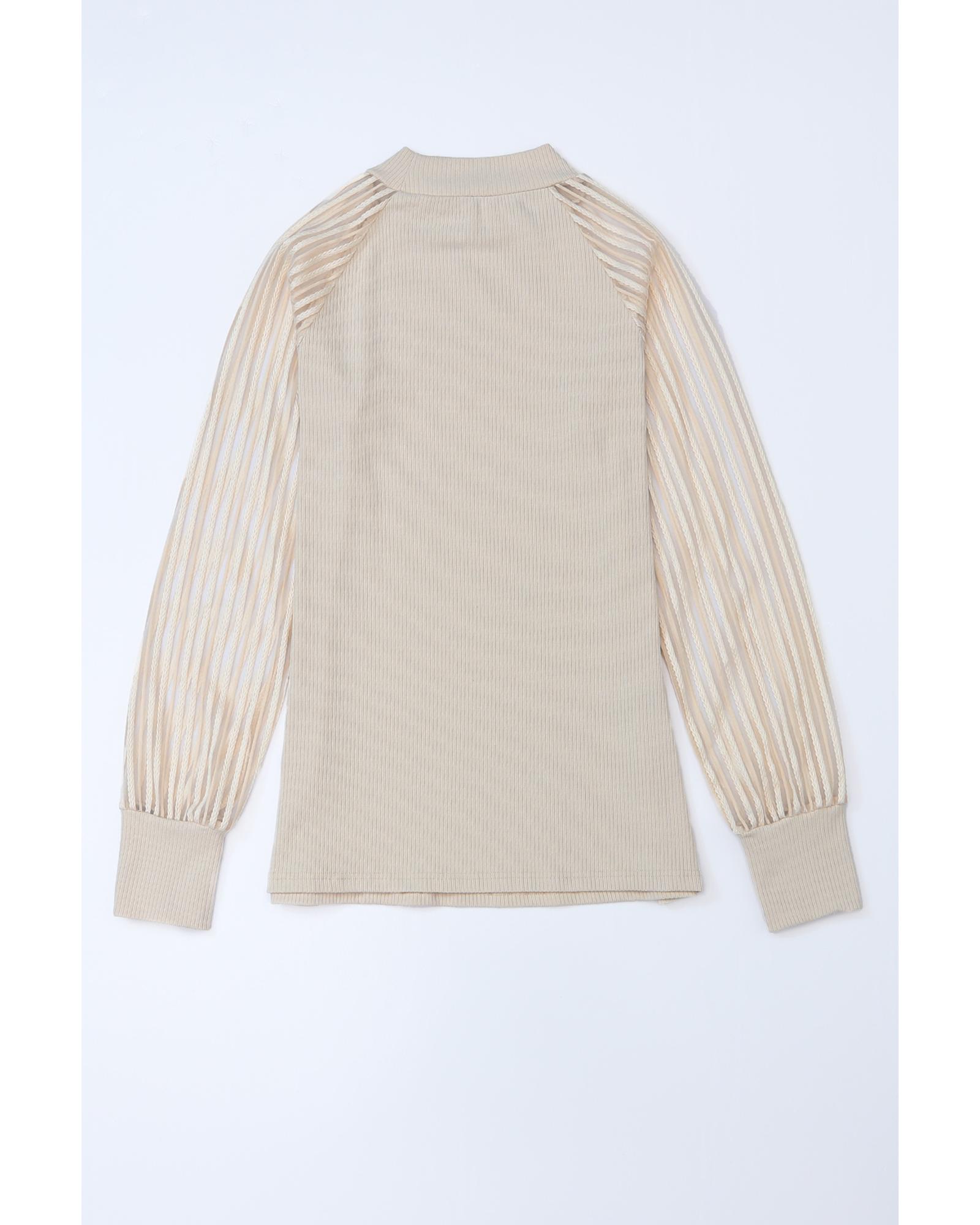 - Stylish and versatile apricot striped mesh long sleeve top