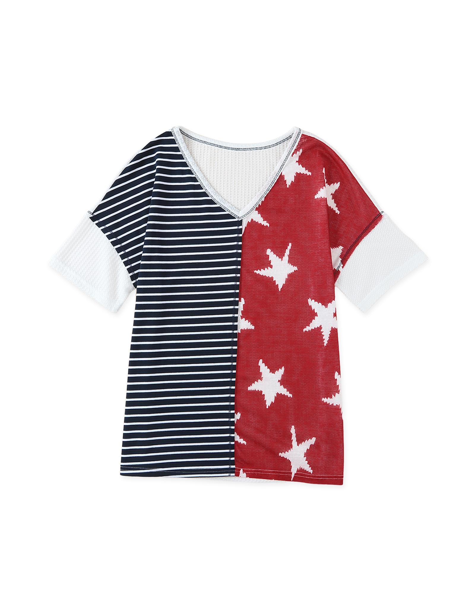 • Stylish and versatile Stripes Stars Print Knit Short Sleeves Top