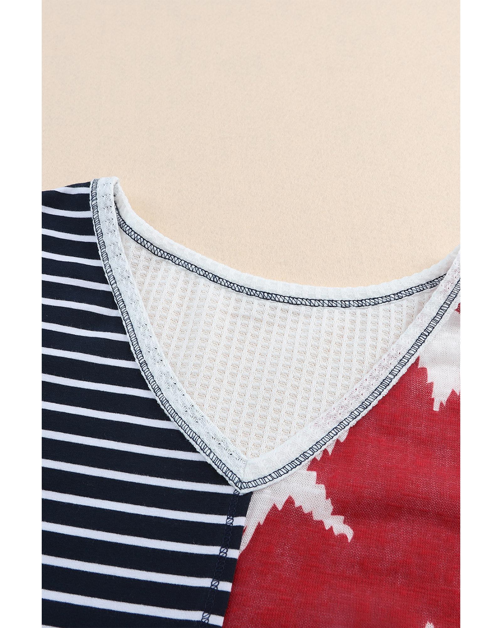 Azura Exchange Stripes Stars Print Knit Short Sleeves Top – S