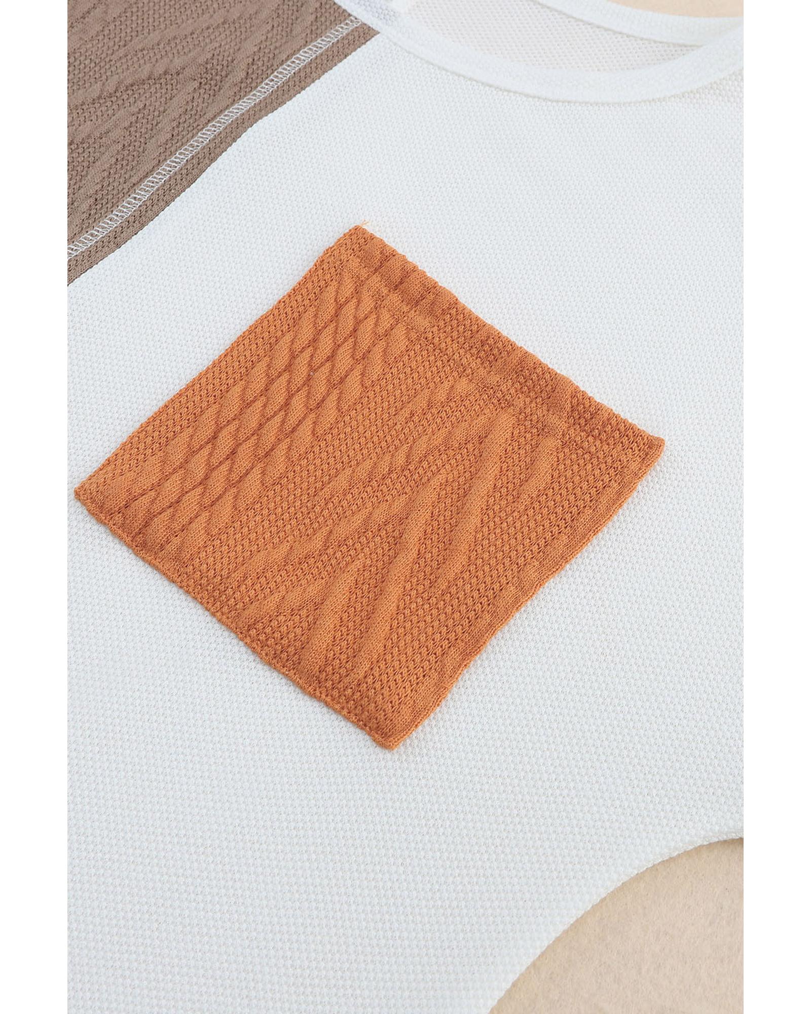 Azura Exchange Textured Knit Top with Colorblock Chest Pocket - S Original price was: $57.99.Current price is: $30.99.