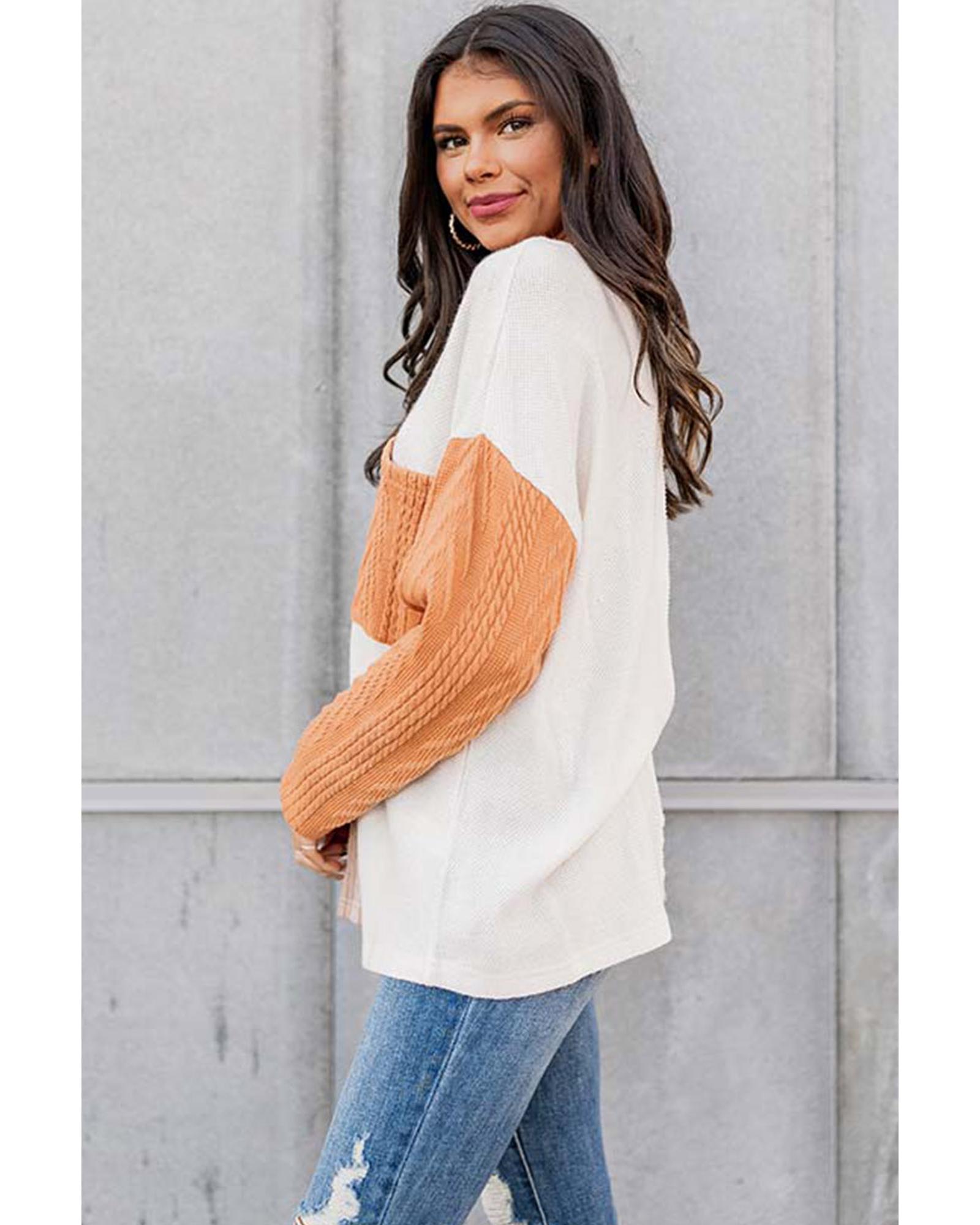 Azura Exchange Textured Knit Top with Colorblock Chest Pocket - S