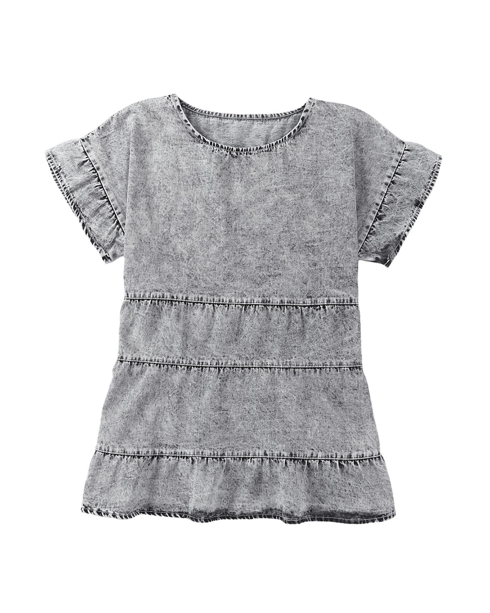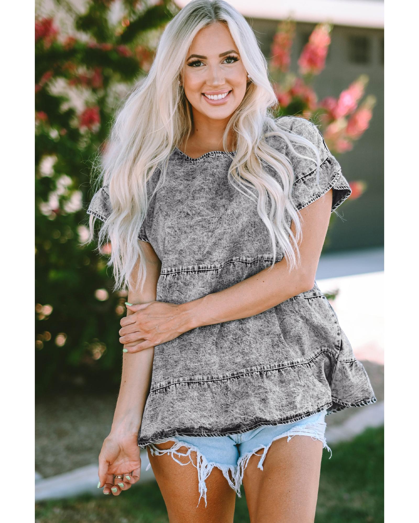 - Stylish and feminine Flutter Sleeves Tiered Denim Top