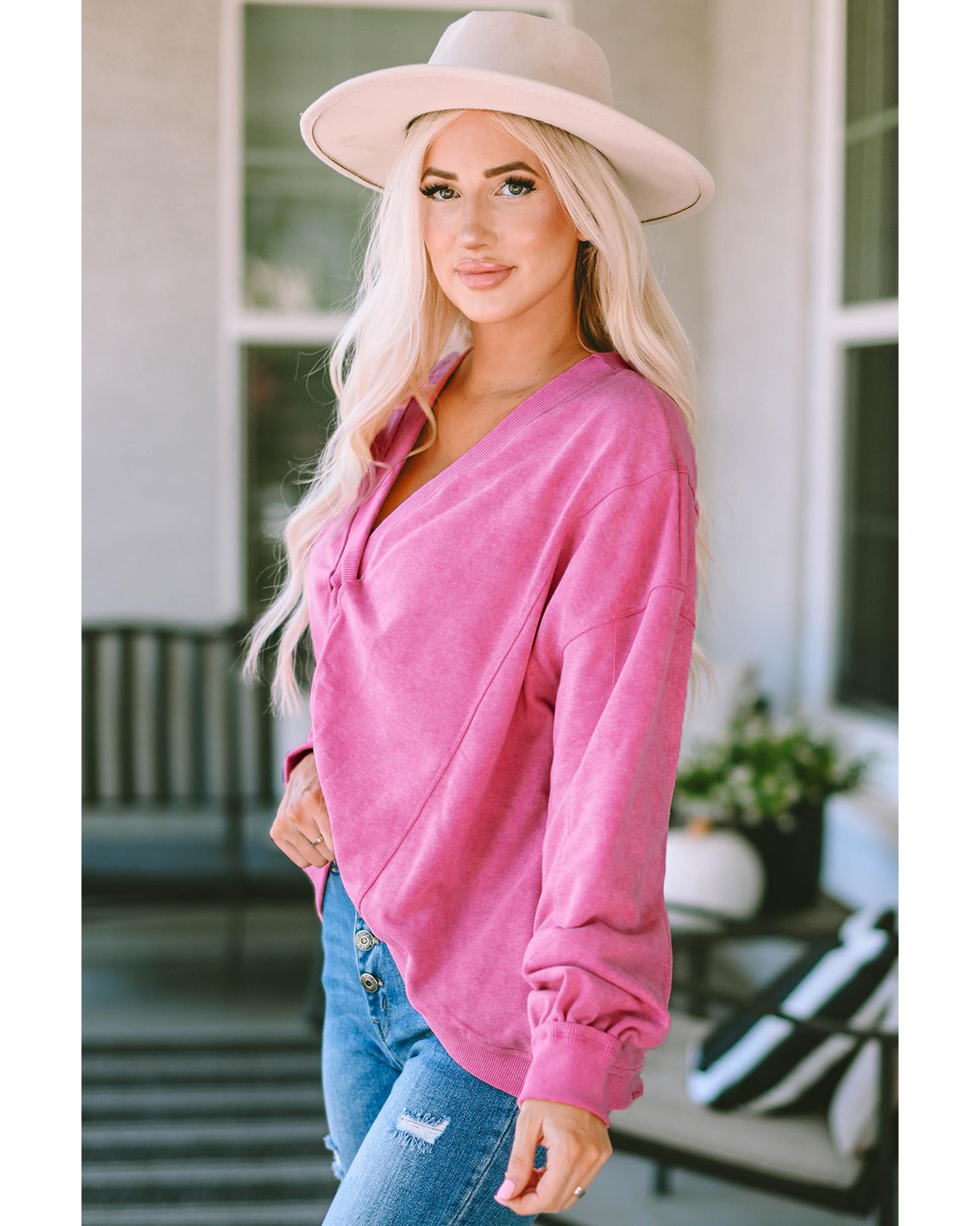Azura Exchange Contrast Binding Snap Button Geometric Pullover Sweatshirt - S