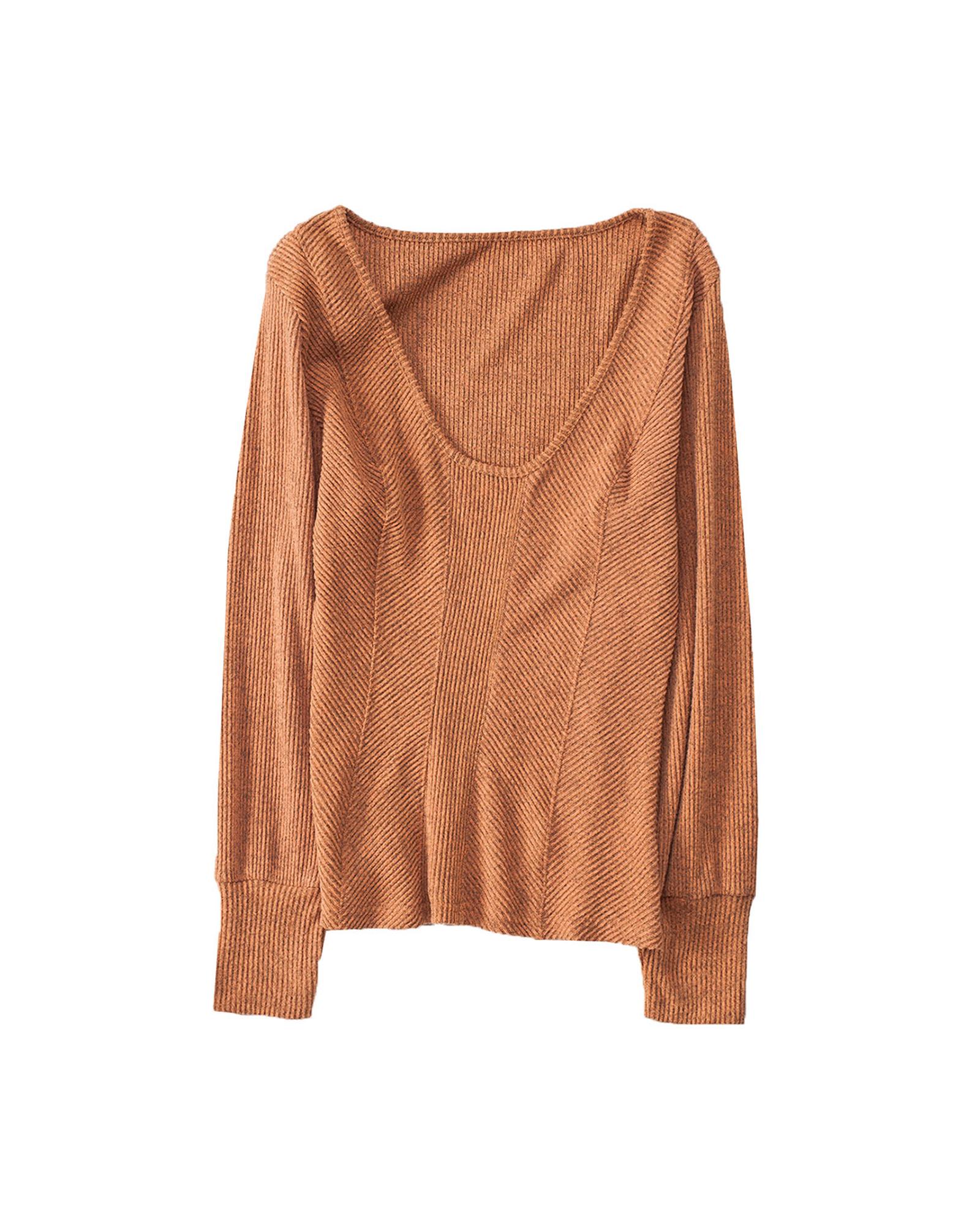 Azura Exchange U Neck Textured Long Sleeve Top - S