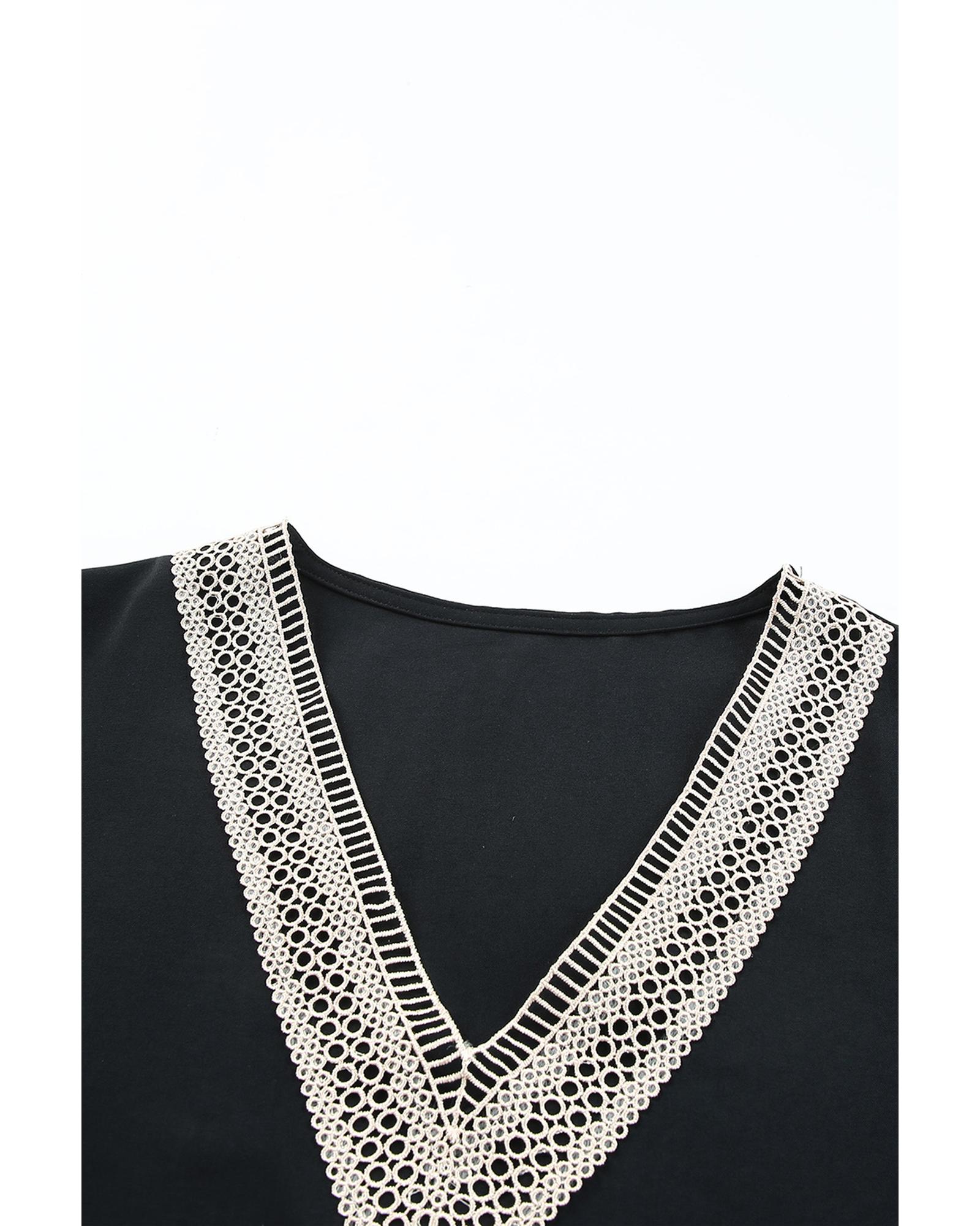 - Elegant Lace Trim V Neck Short Sleeve Blouse