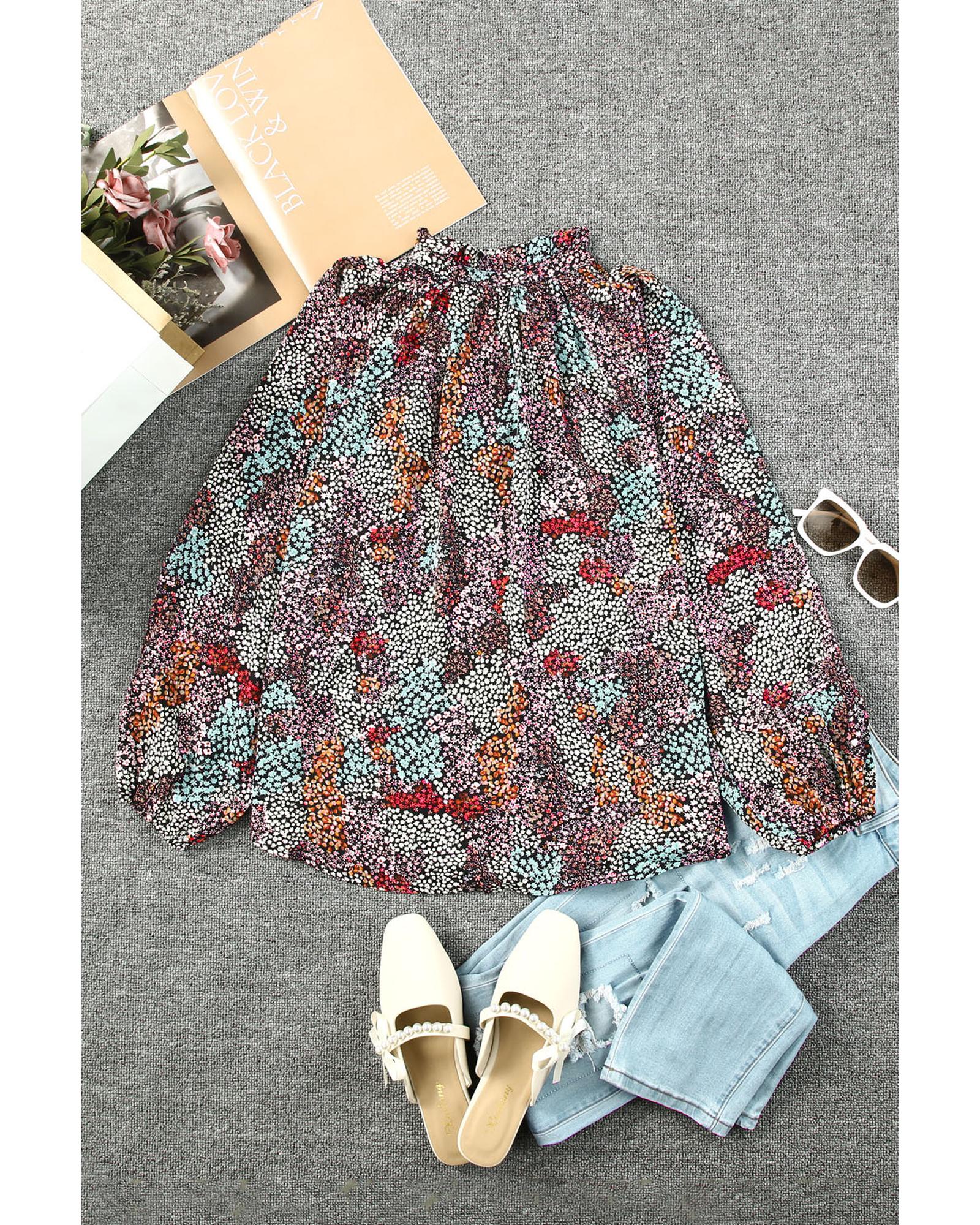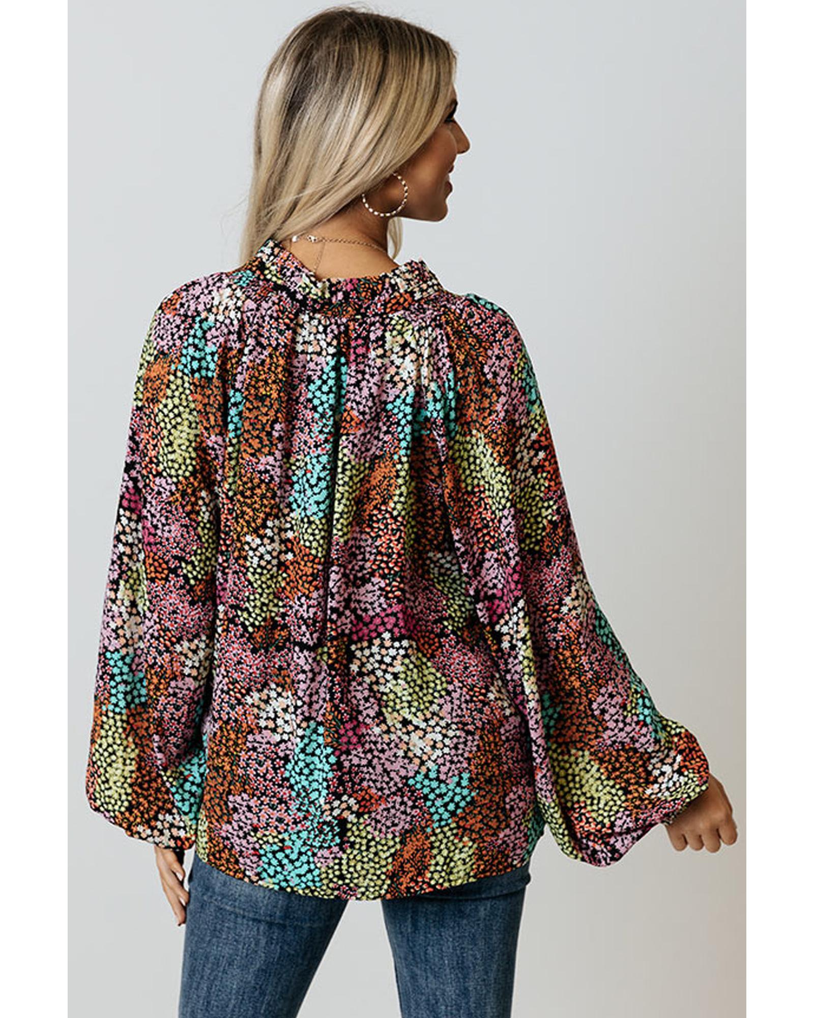 - Vibrant and stylish Multicolor Floral Tie V Neck Puff Sleeve Blouse