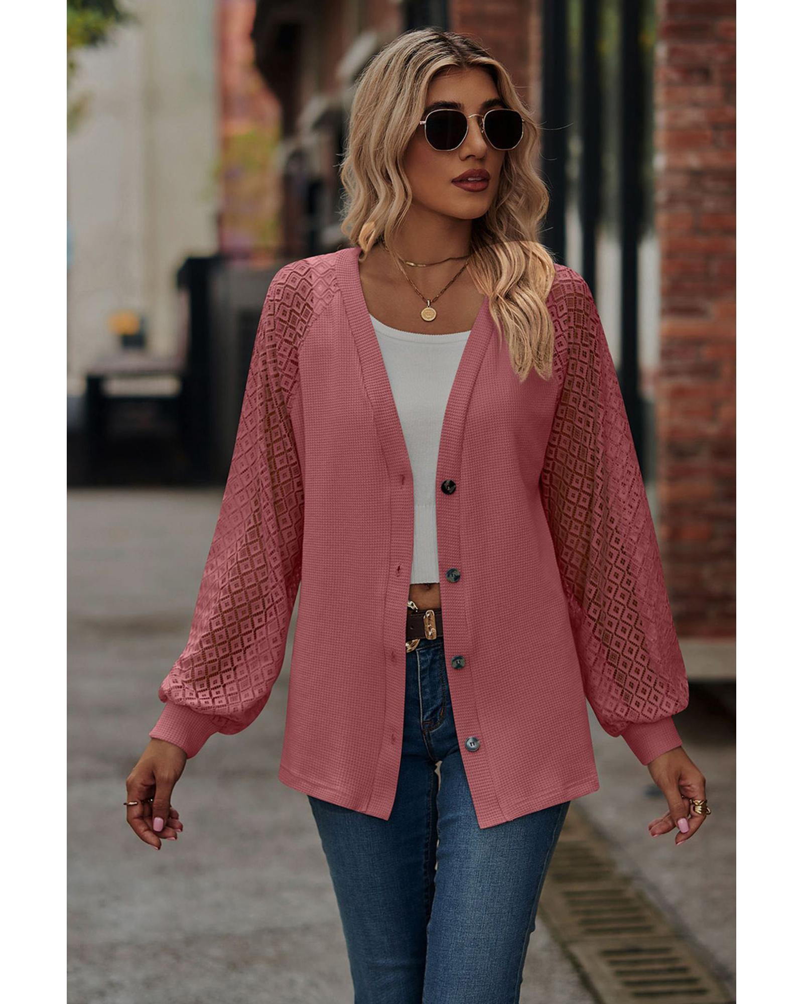 Azura Exchange Waffled Knit Lace Long Sleeve Buttoned Cardigan – M