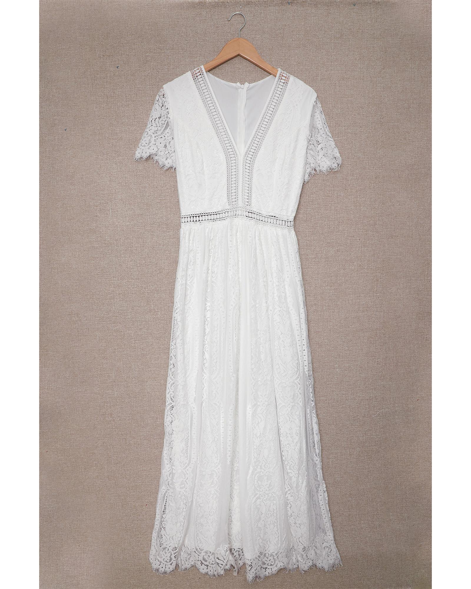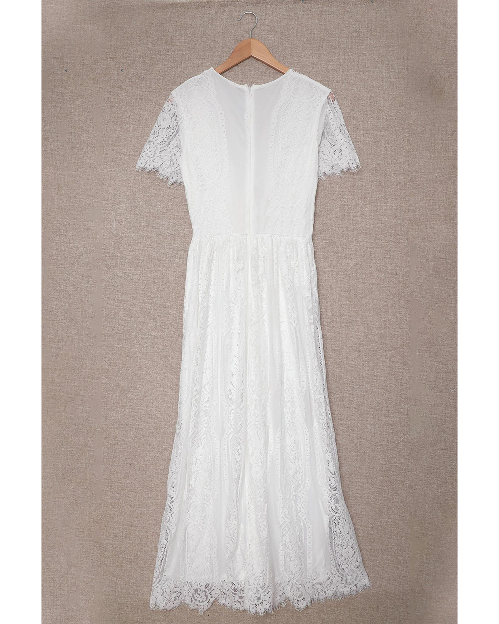 Azura Exchange White Blue Fill Your Heart Lace Maxi Dress – 2XL