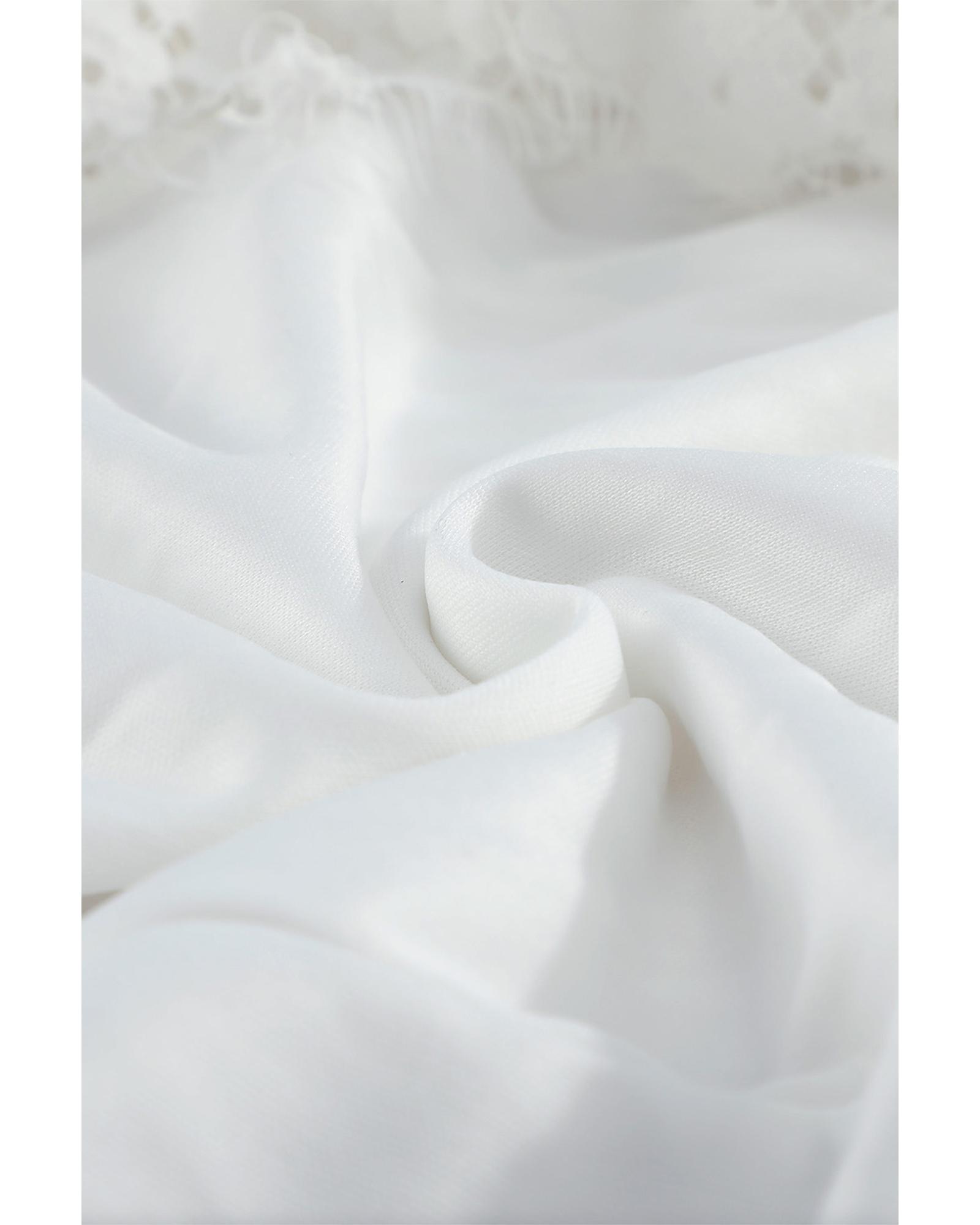 - Lace overlay and tulle underlay with soft eyelash lace trims