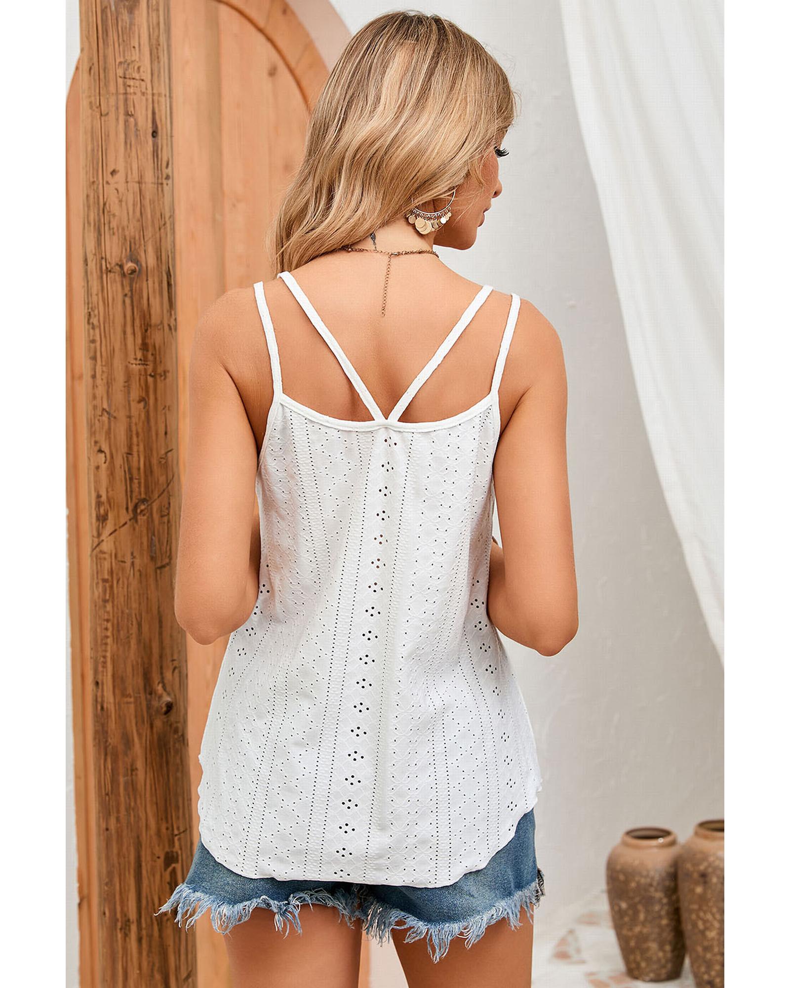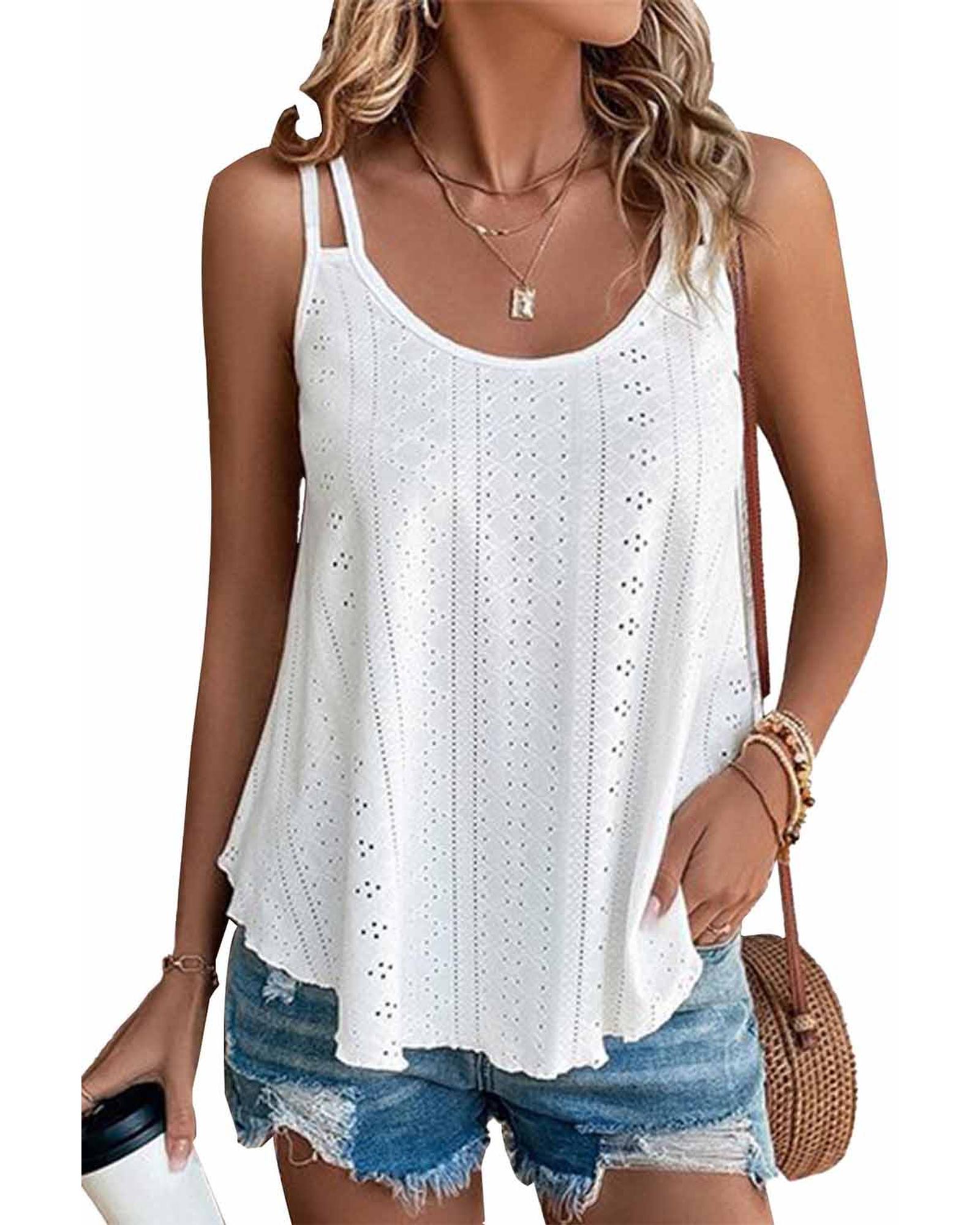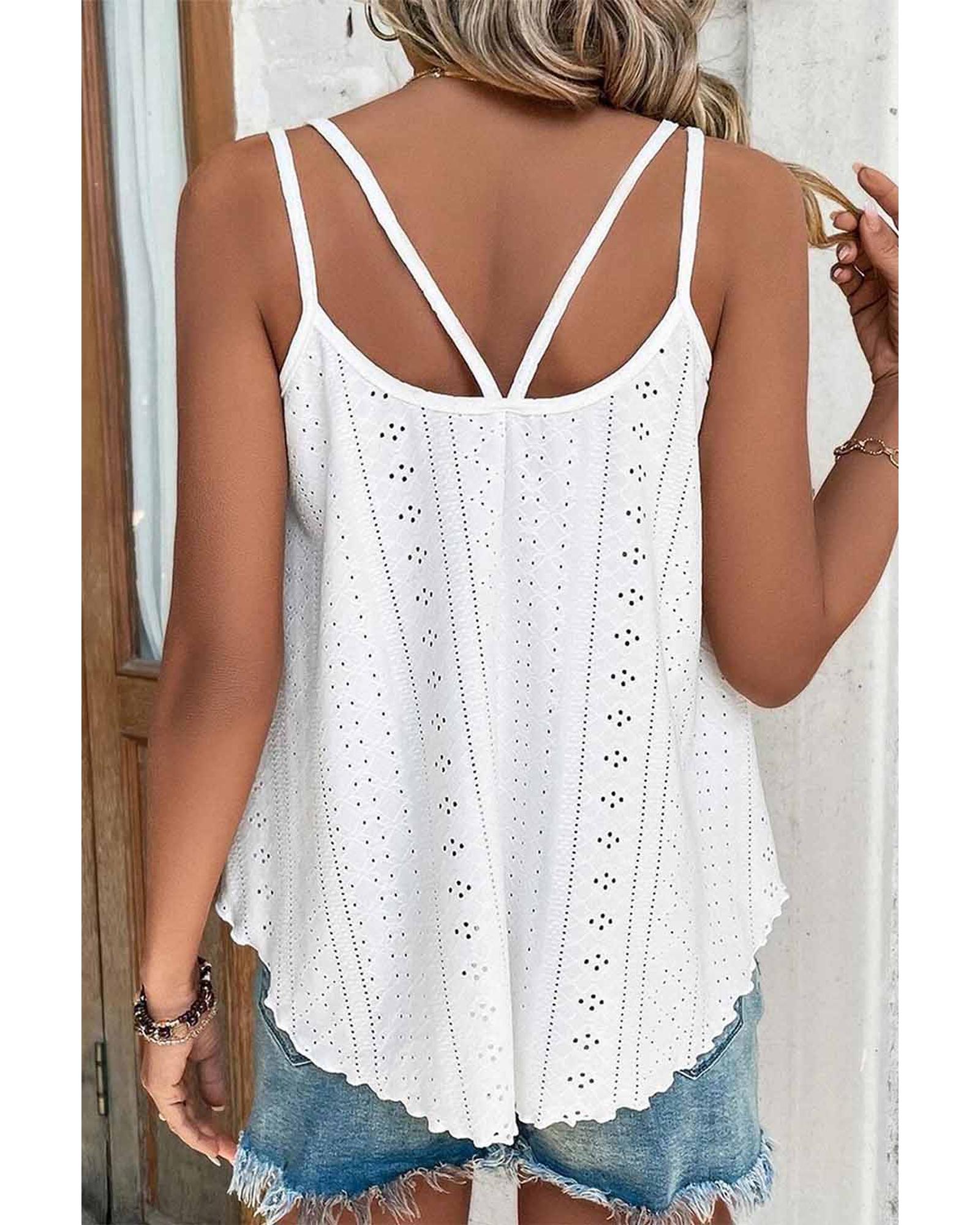 Azura Exchange White Eyelet Strappy Scoop-Neck Tank Top – L