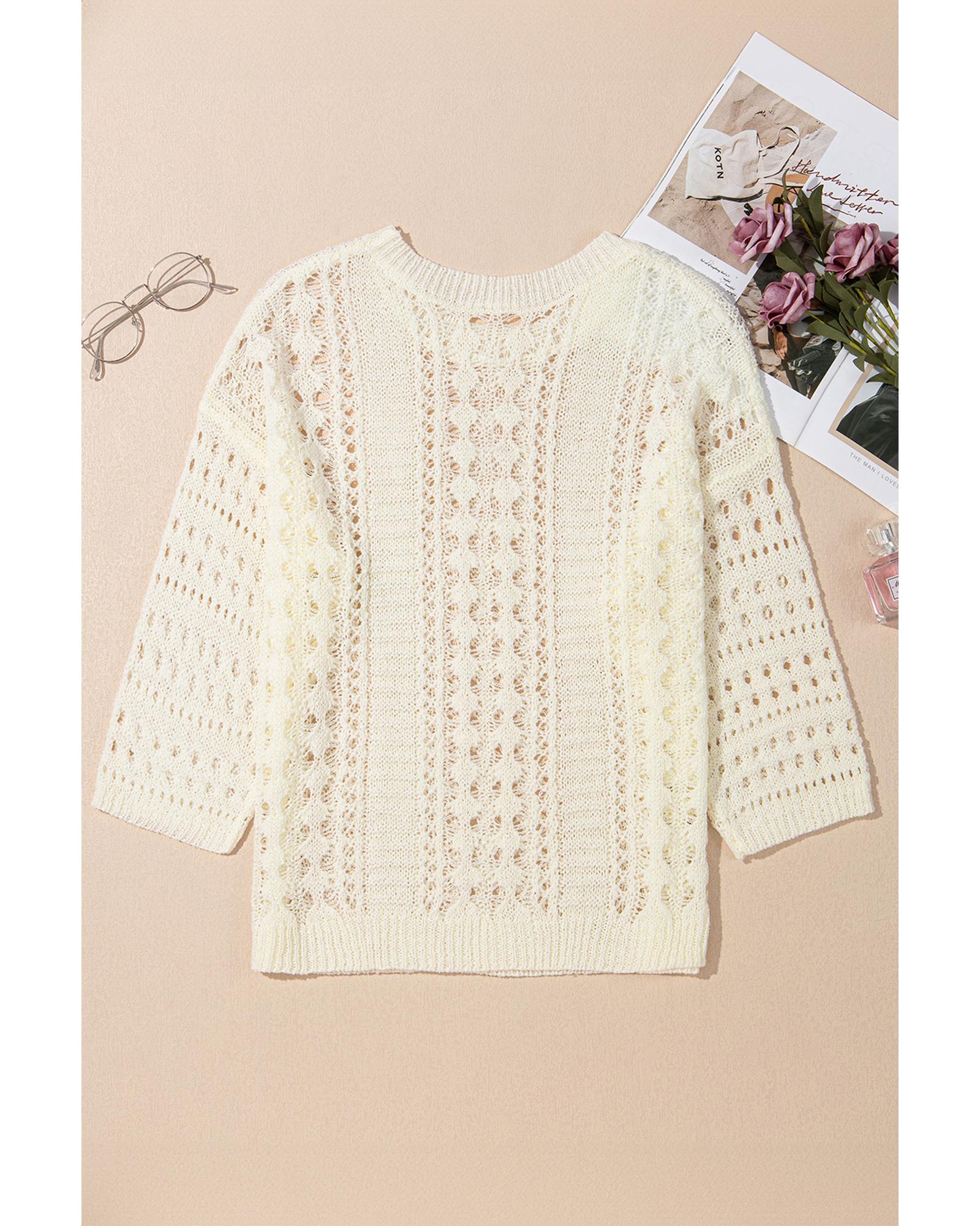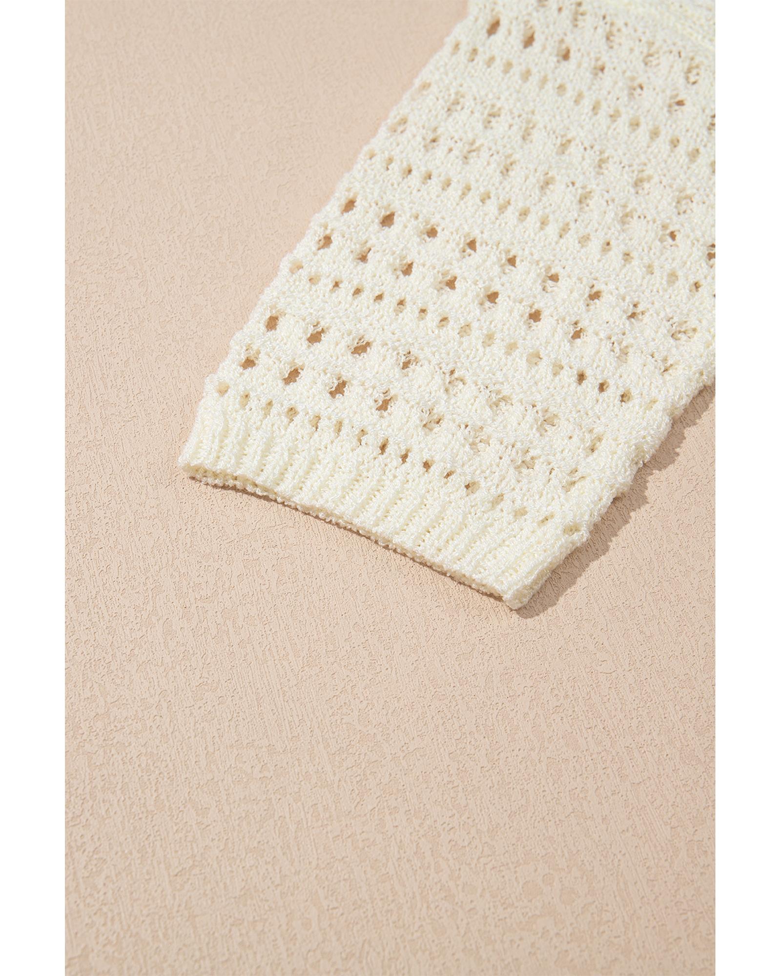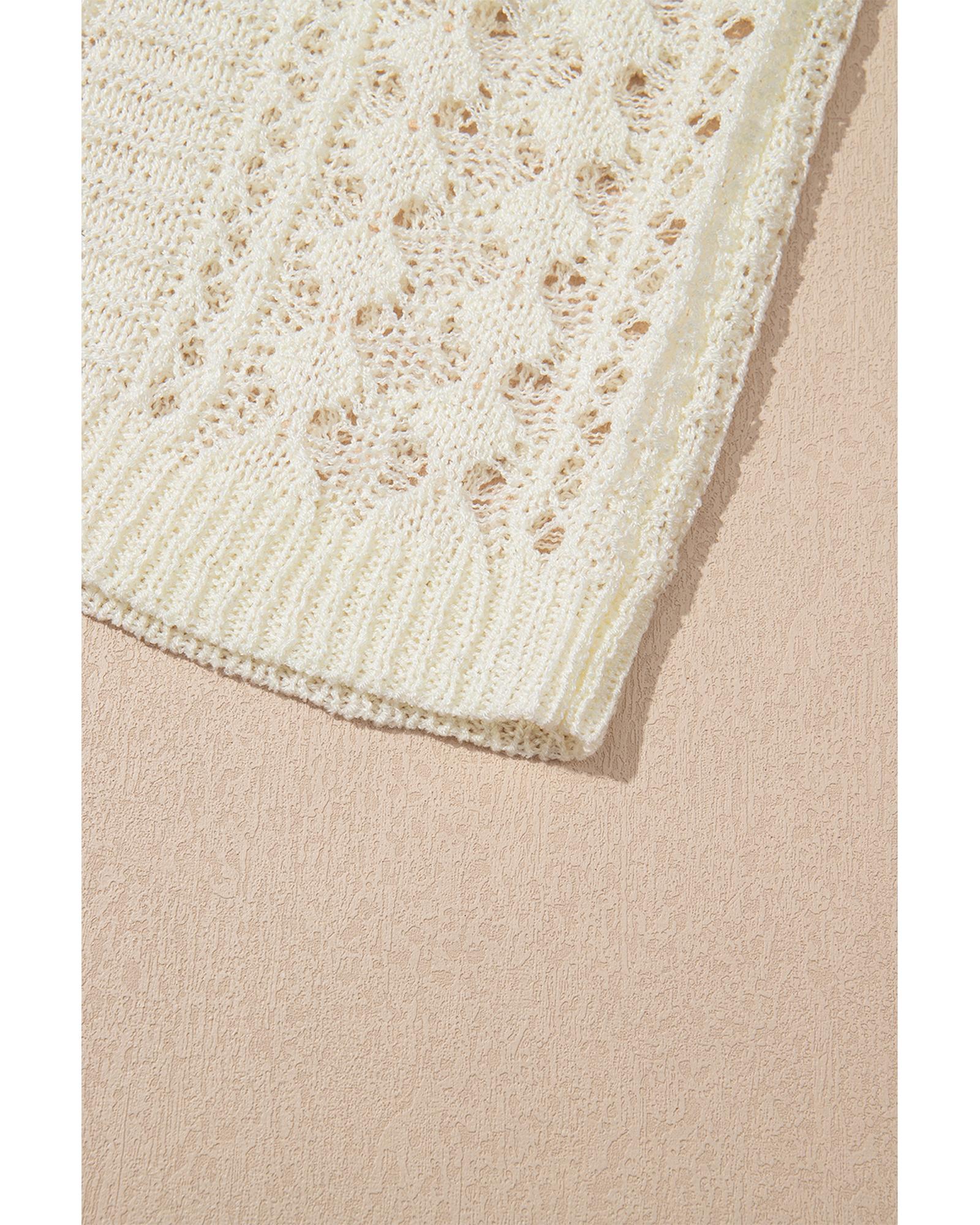 Azura Exchange White Hollow Out Knit Bracelet Sleeve Drop Shoulder Sweater – L