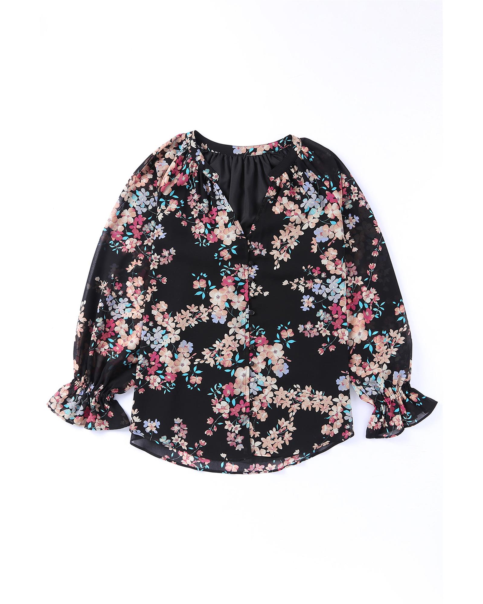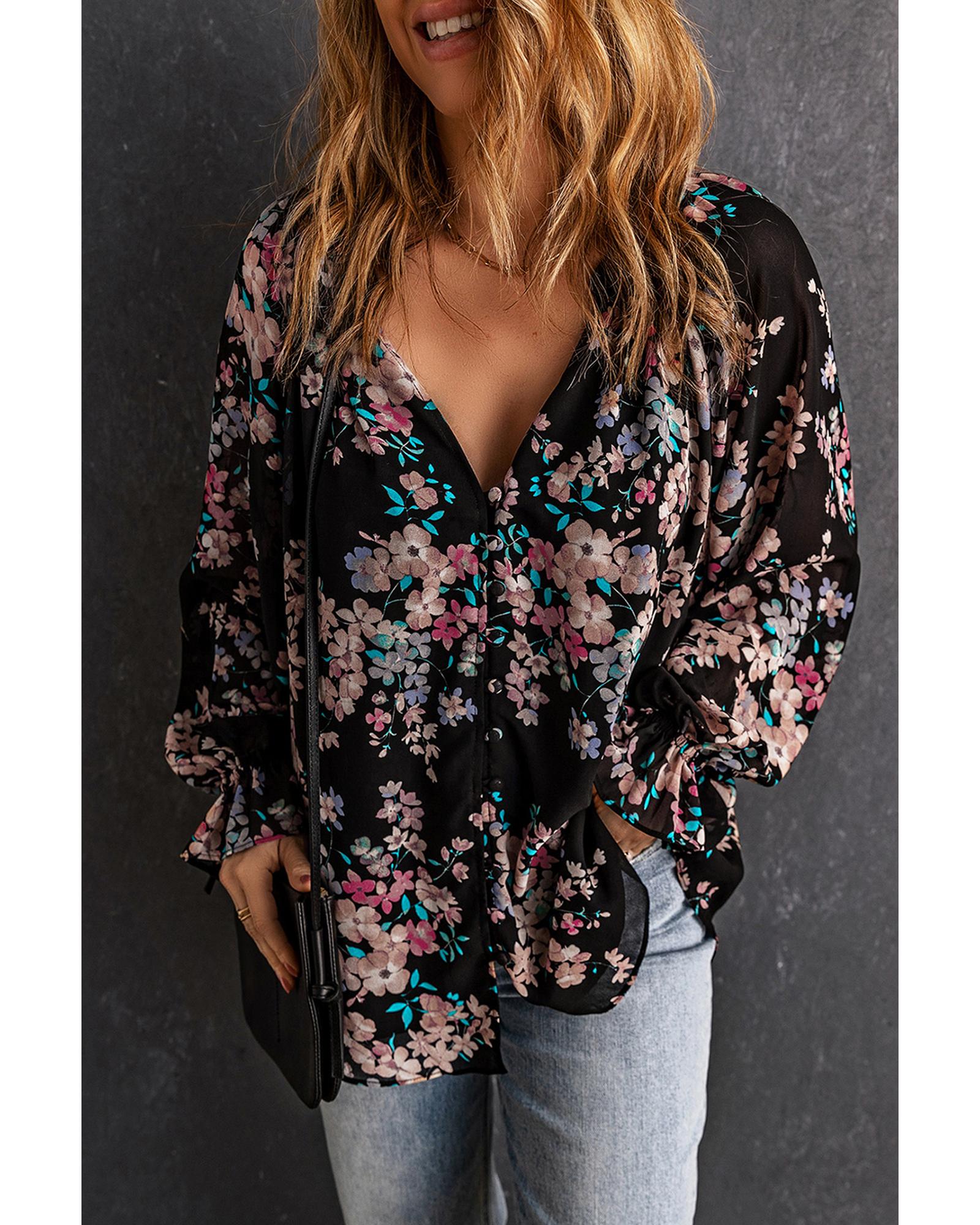 Azura Exchange Wildflower Print Chiffon Blouse - S