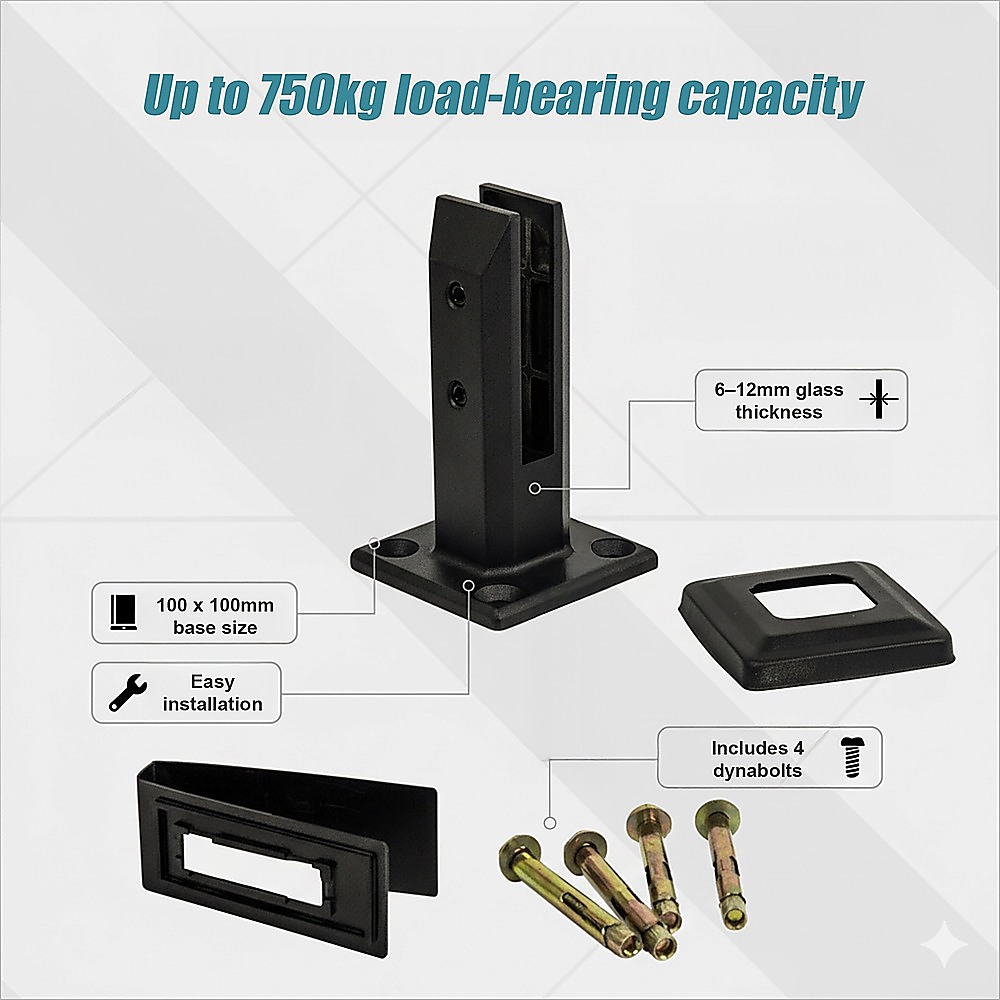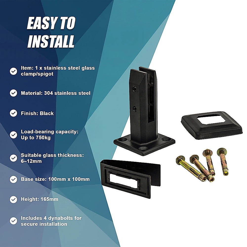 Balustrade Black Glass Clamp 304 Stainless Spigot Pool Fencing Fence