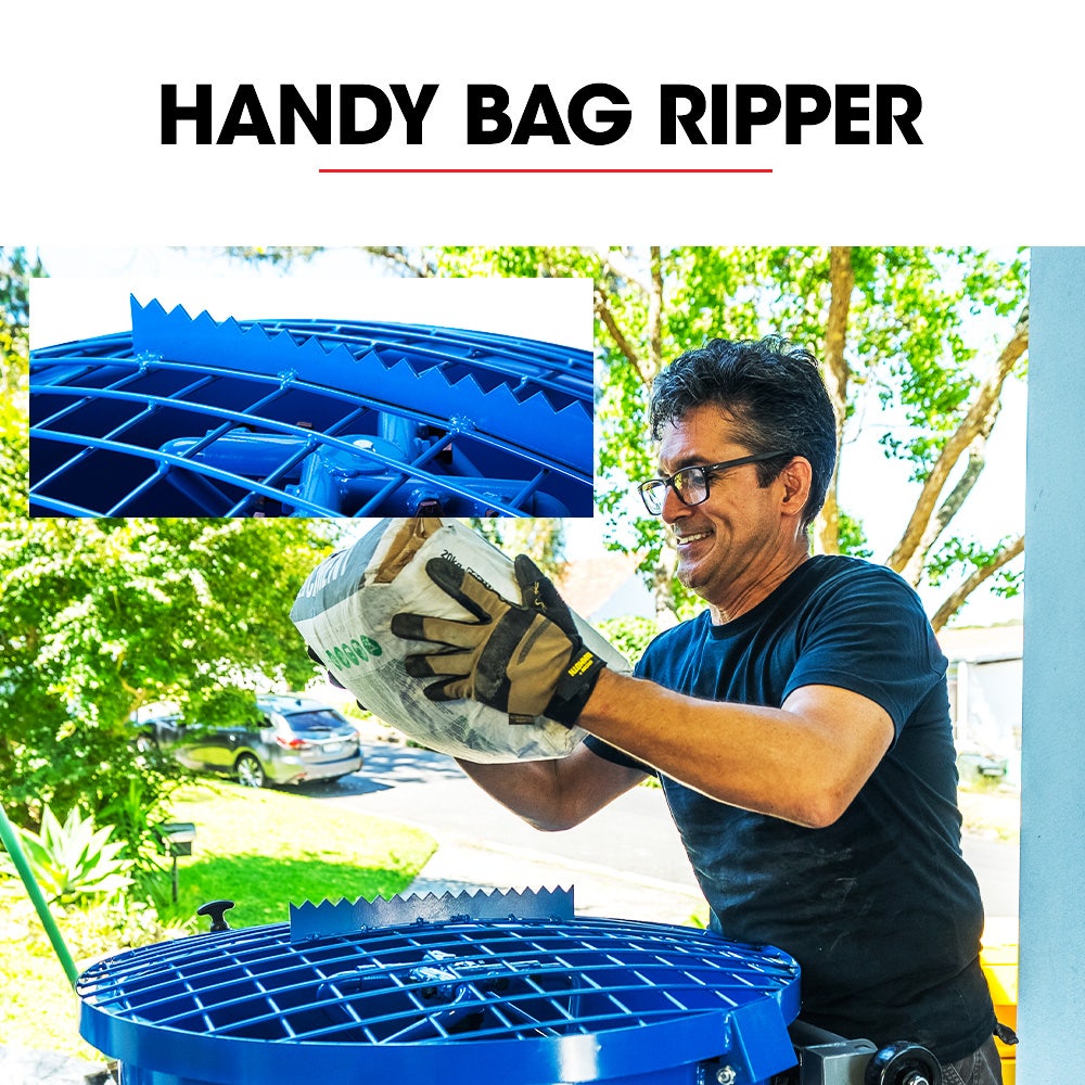 For added convenience and safety, the protective hopper grate features a built-in bag splitter, making loading quick and efficient. The auto safety shut-off stops the motor when the grate is opened, providing extra protection for operators. The adjustable discharge chute and fold-down platform allow seamless material flow into wheelbarrows or buckets, while the compact design makes transport effortless – easily disassembled and loaded onto utes or trailers by just one person.