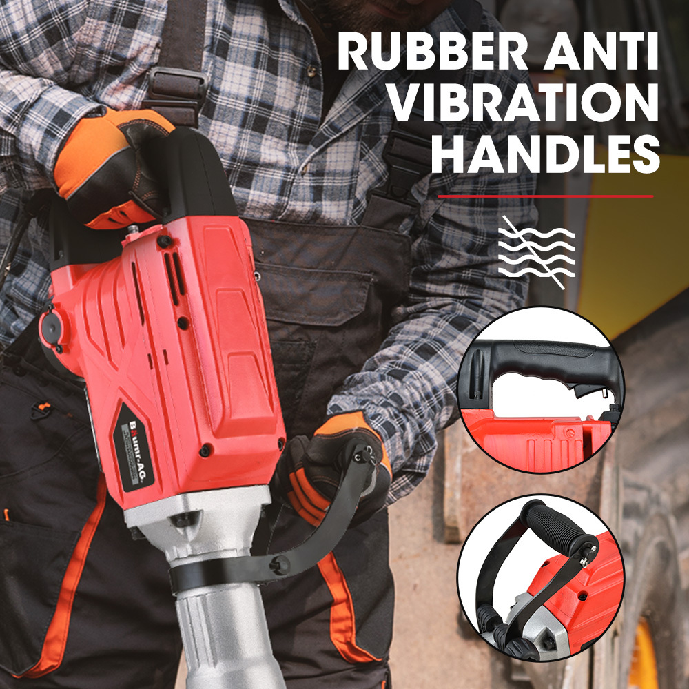 The Baumr-AG 2300W Pro-Grade series Jackhammer is the definitive tool for any demolition task, large or small! The BMJK-23S Mk II has a standard quick change 30mm hex ram head that is compatible with the most popular commercial attachments. When it comes to getting the job done fast, there’s nothing like having the best equipment at your fingertips. Make an investment in quality tools for your home or business – BUY SMART, BUY BAUMR-AG!