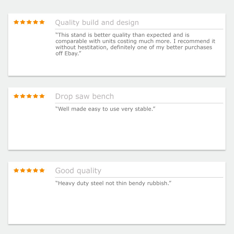 Comprised of high quality components, you’ll have no trouble fitting just about any mitre saw on the market. The adjustments don’t end at the base plate. Height and length are adjustable, accommodating for large and small jobs.