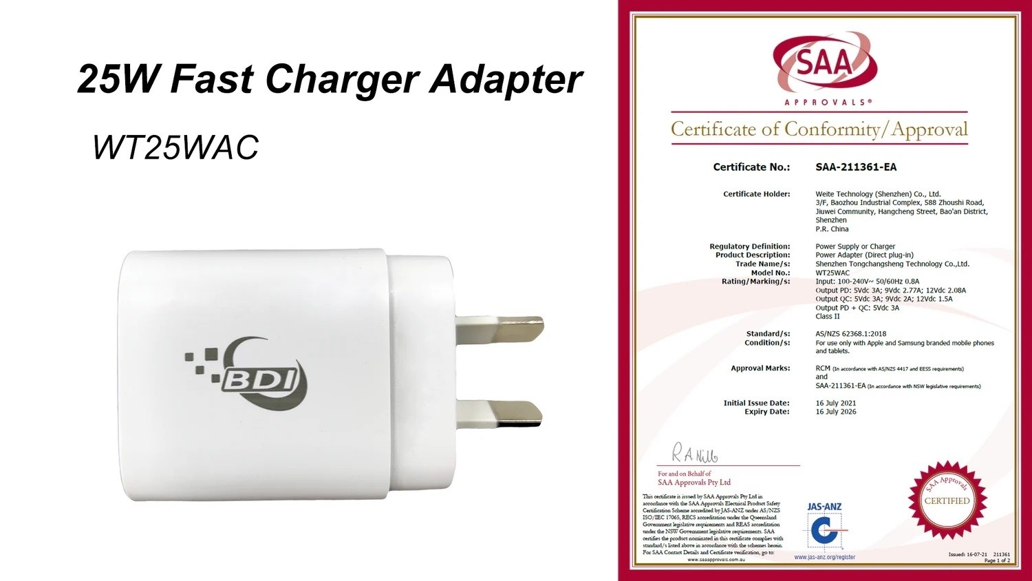 The USB C Port is equipped with Power Delivery technology supports maximum 25W power for fast charger ( 5V/3A, 9V/2A, 12V/1.5A). The USB A Port is compatible with Quick Charge 3.0 /2.0/1.0, works with almost all USB devices. One USB Type-C PD port, Quick Charge 3.0 Port for a simultaneous fast charging treatment. Compact size and international voltage compatibility (AC 100-240V) make it an ideal travel companion. This compact type c charger fits easily into your backpack and charges your devices everywhere. Certified by SAA, protect your devices away from short-circuit / over-heating / over-voltage etc. Universal Compatibility- With Any USB-C or Standard USB Device. Certificate No.: SAA-201480-EA