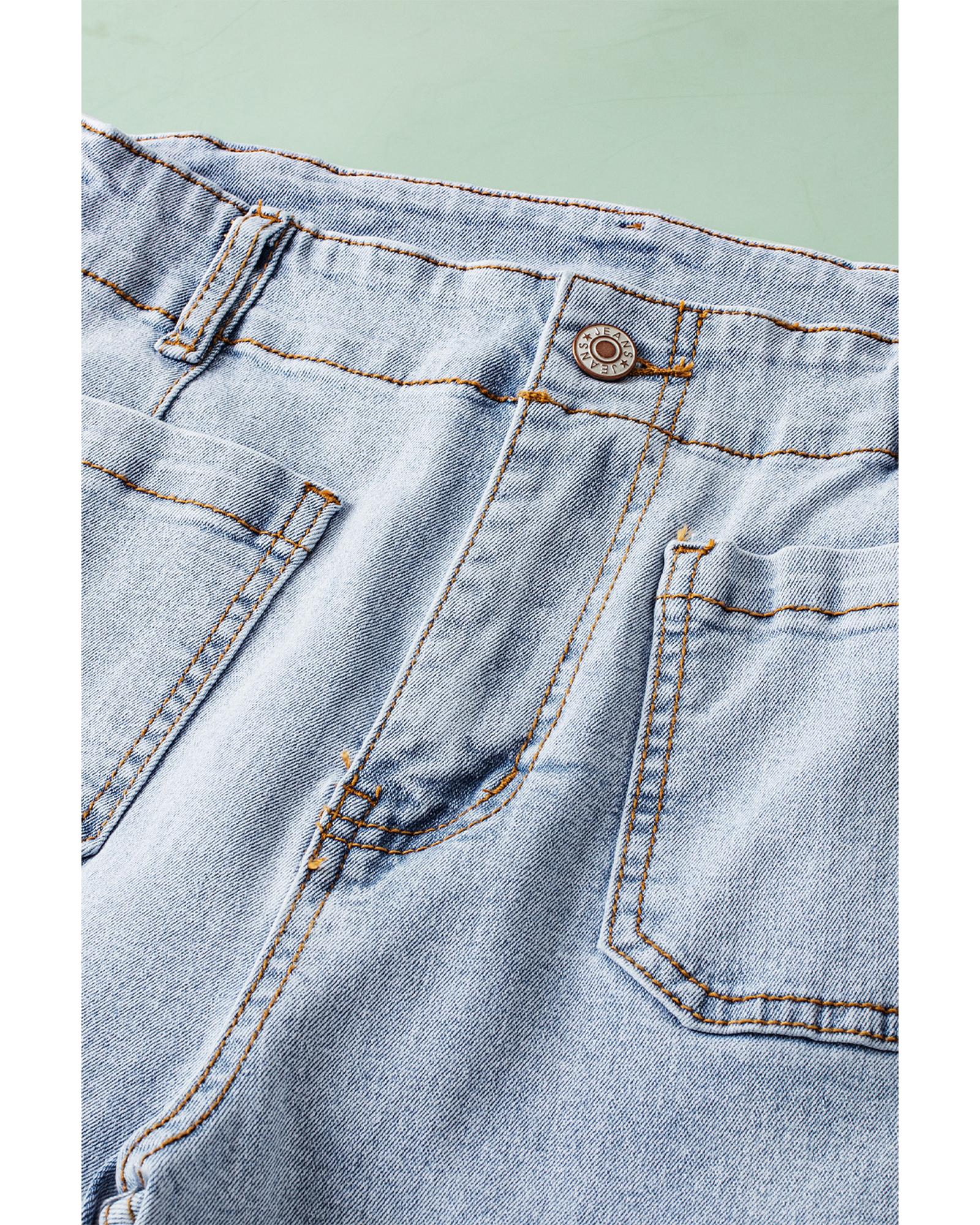 Blue Chest Pockets Drop Shoulder Loose Denim Jacket - S