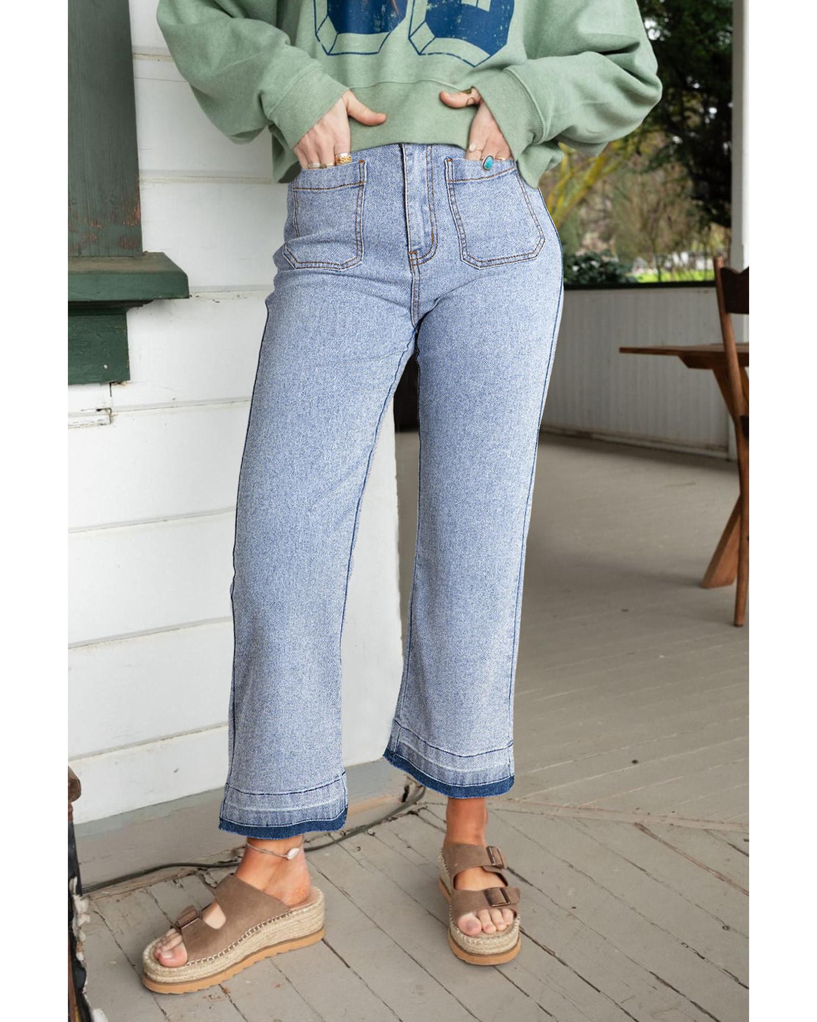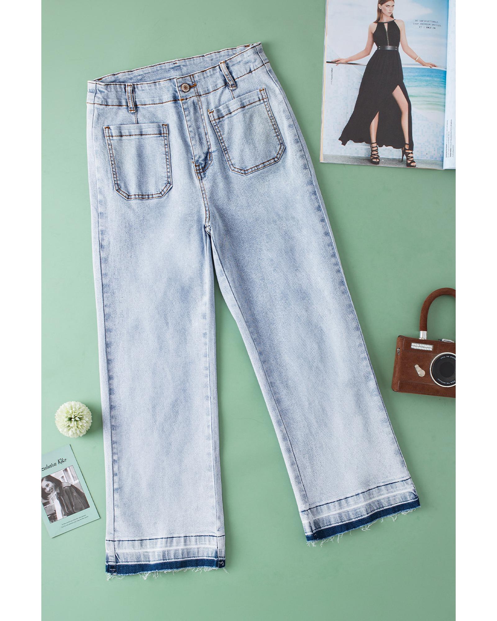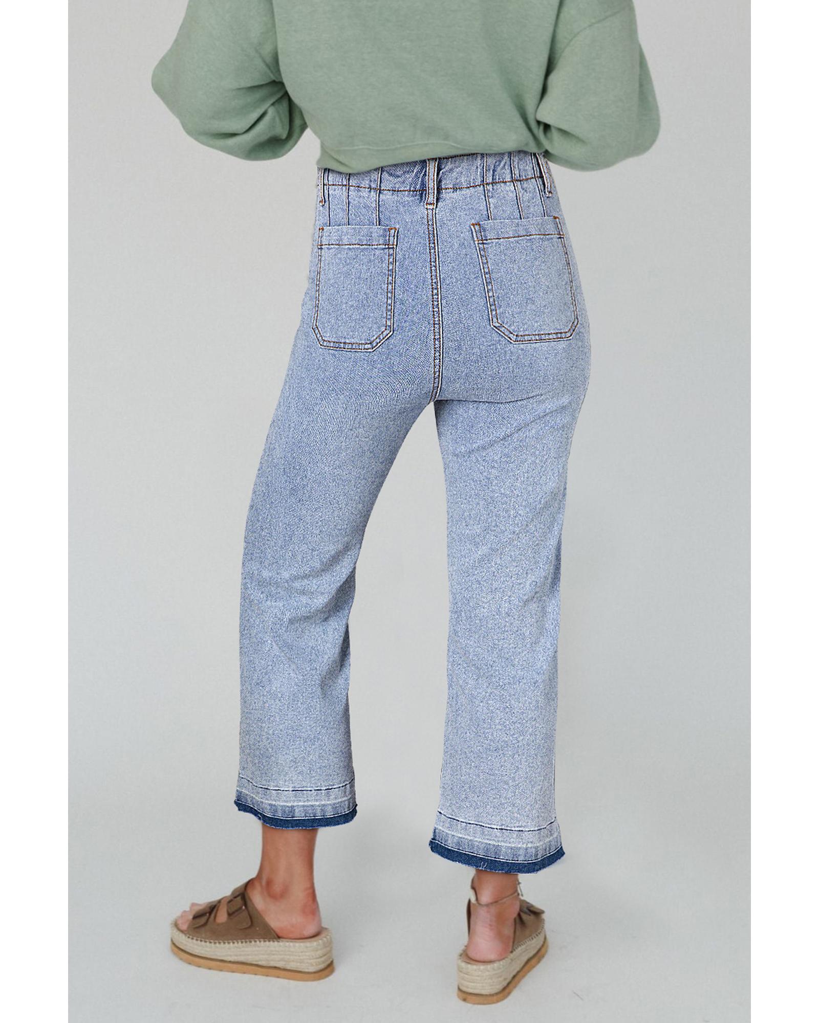 Beau Blue Acid Wash Contrast Edge Pocketed Cropped Jeans – 14 US