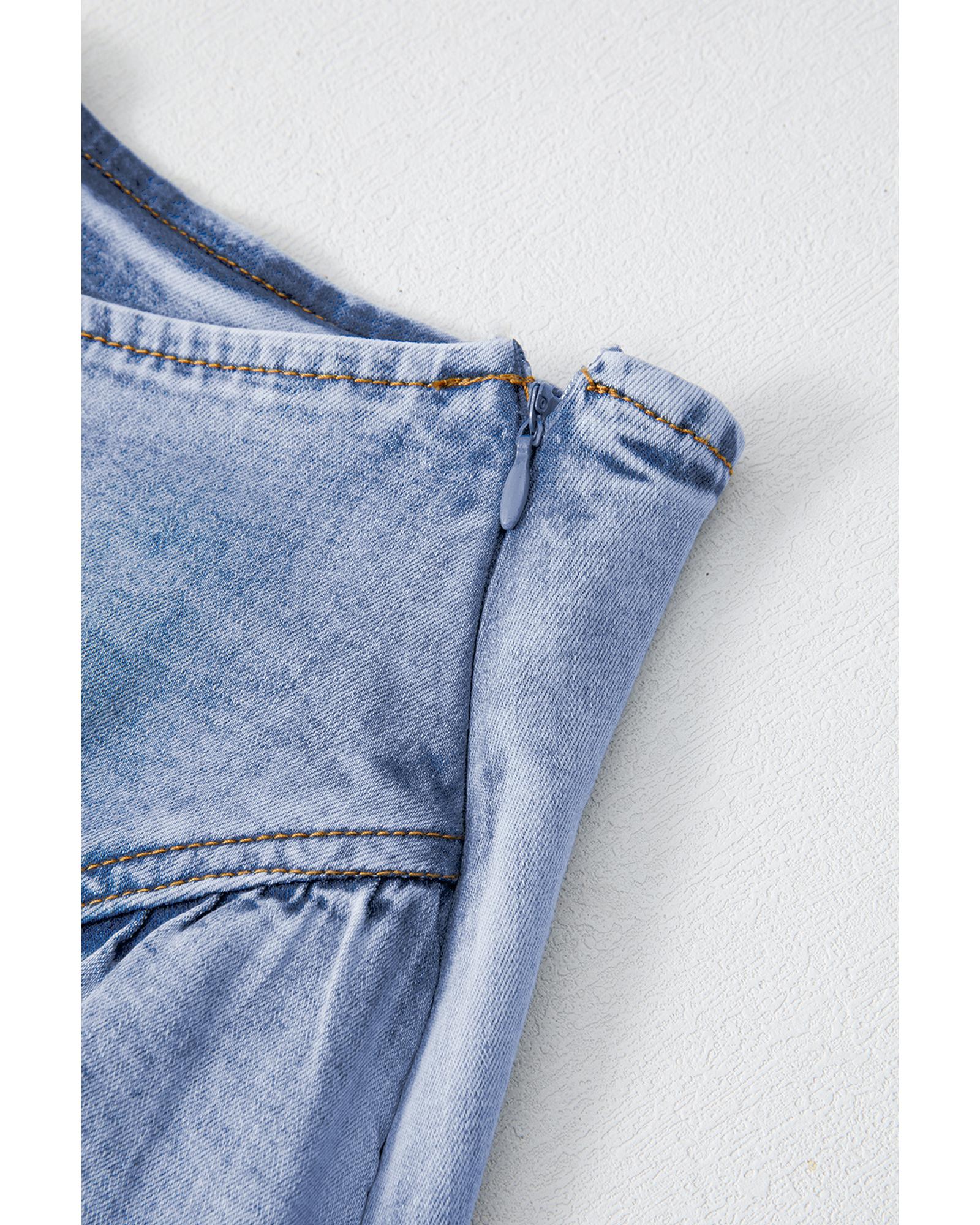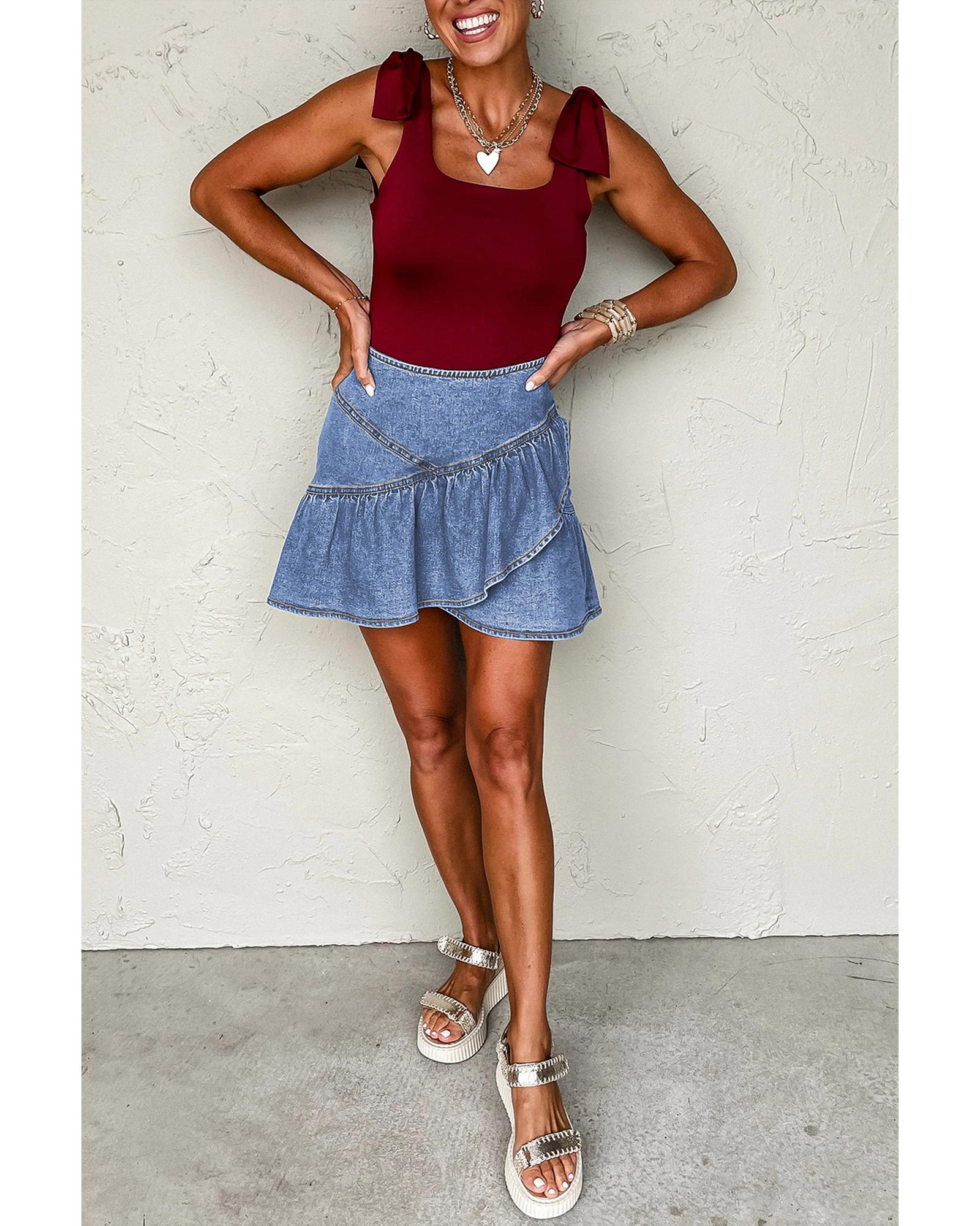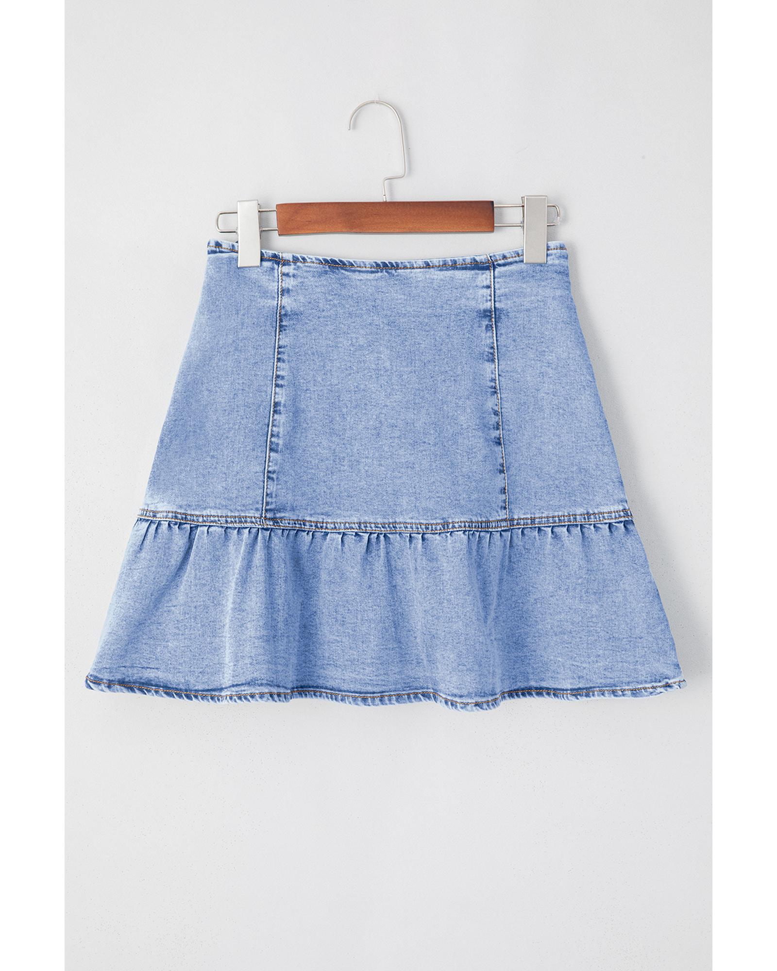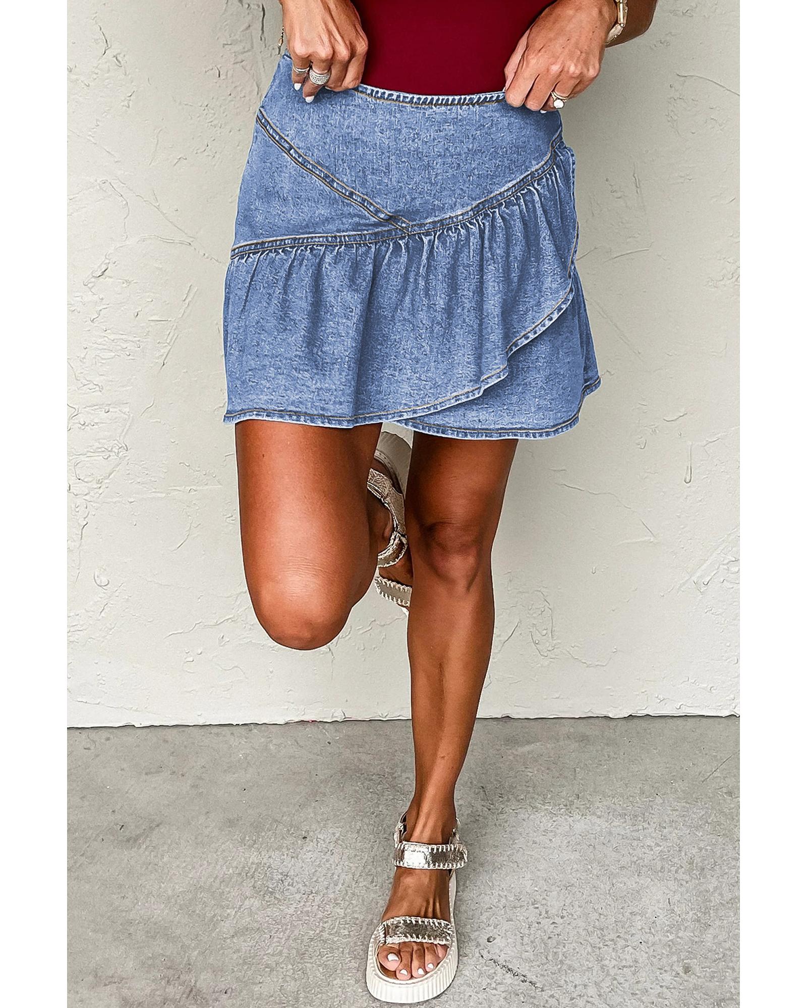 Beau Blue Asymmetric Ruffle Overlay Denim Mini Skirt – XL