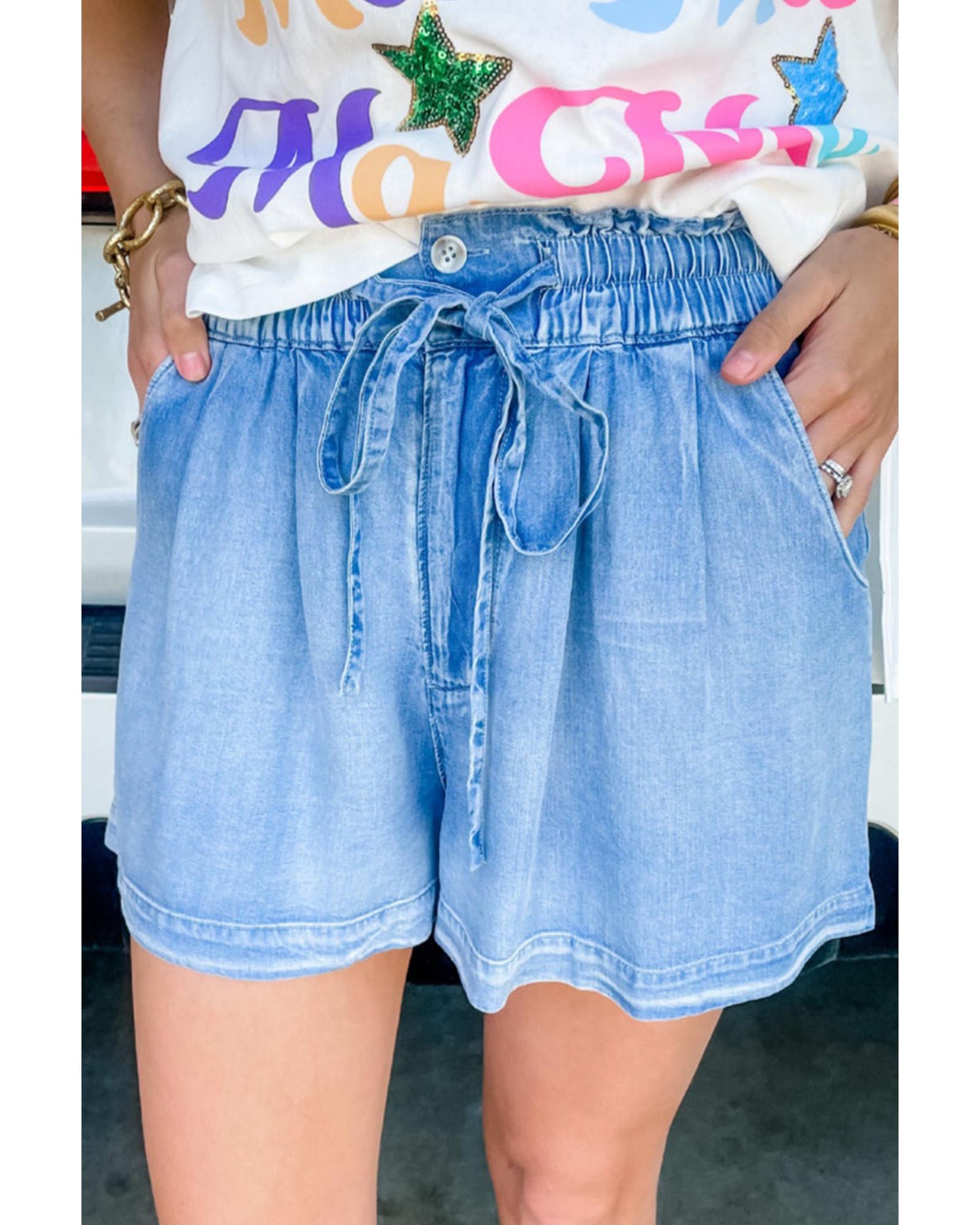 Beau Blue Casual Chambray Drawstring Shorts – 12 US